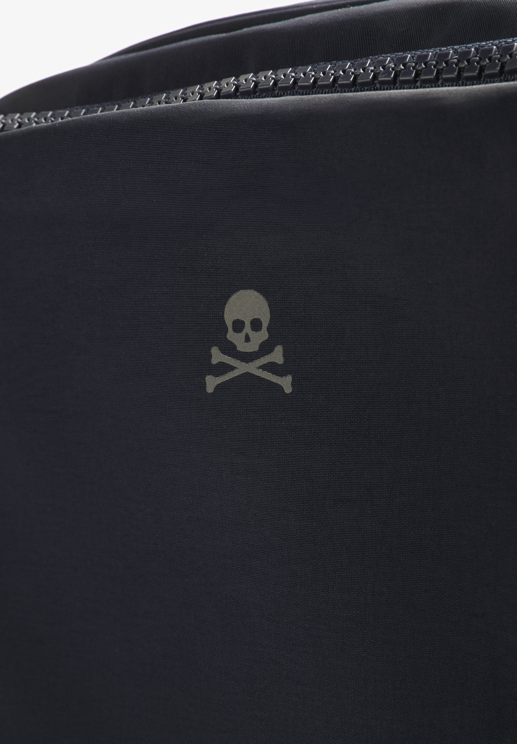 Backpack made of a technical fabric. Double compartments, zip fastening and double back and shoulder straps. Front pocket with zip and contrast skull detail at the front.