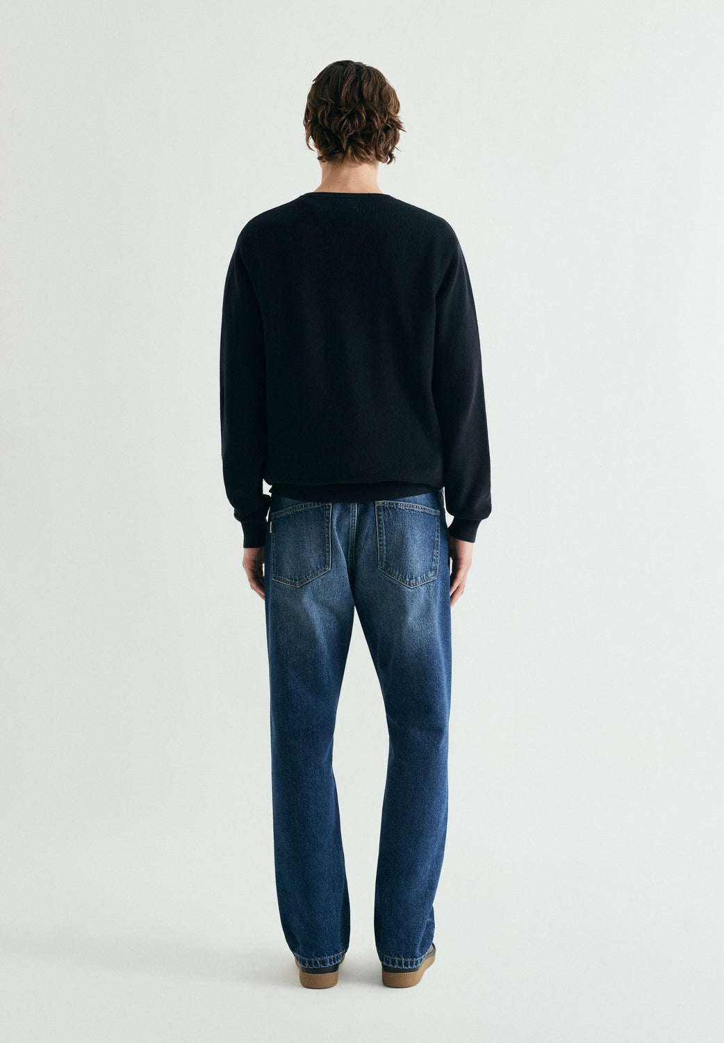Regular fit jeans. Five pockets. Faded effect. Belt loops at the waist. Front zip and button fastening.