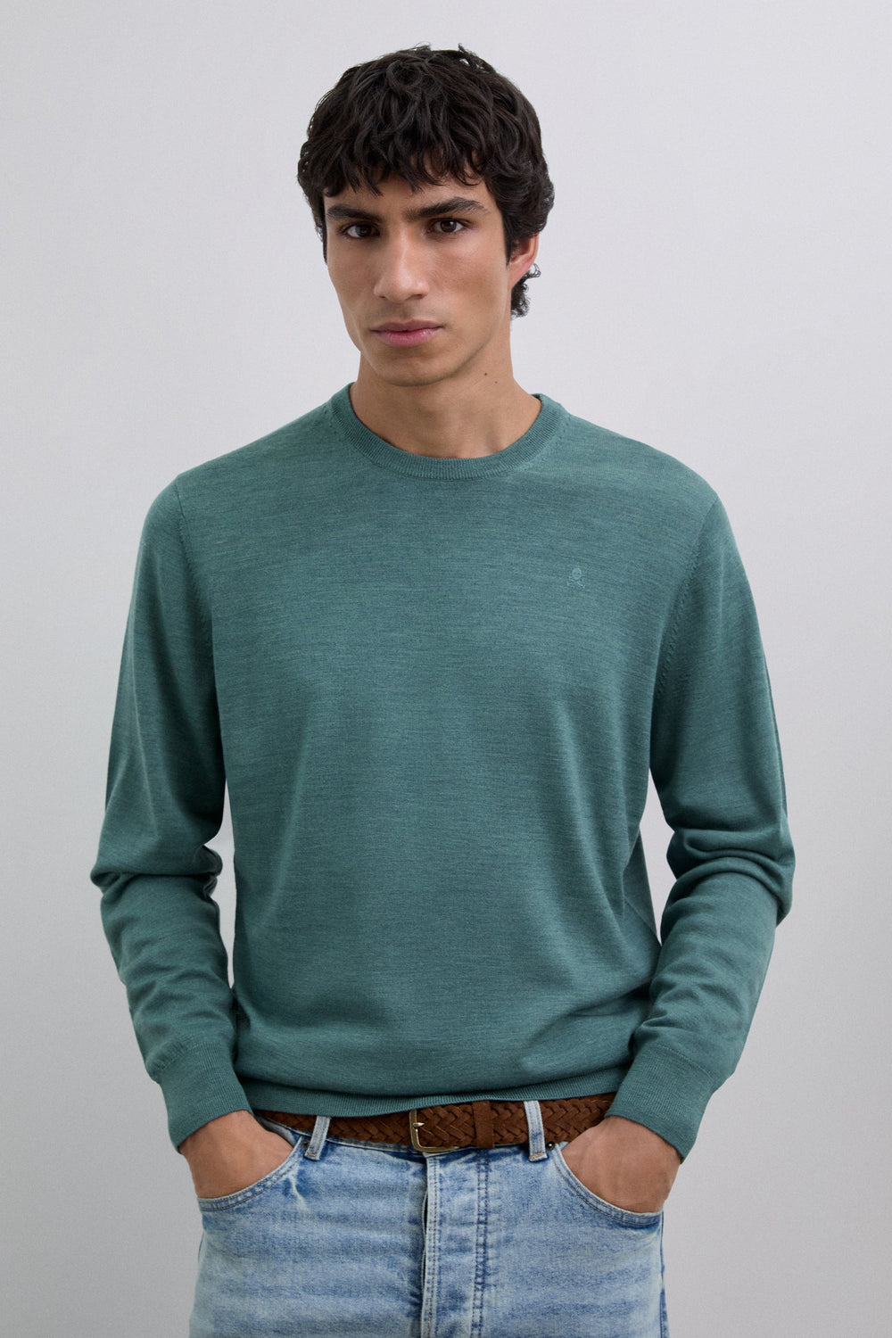 Sweater made of 100% wool. Regular Fit. Round neck. Long sleeves. Matching embroidered skull detail on the chest. Ribbed trim.