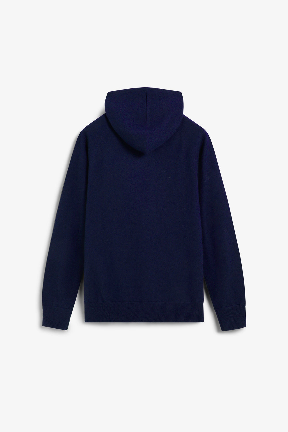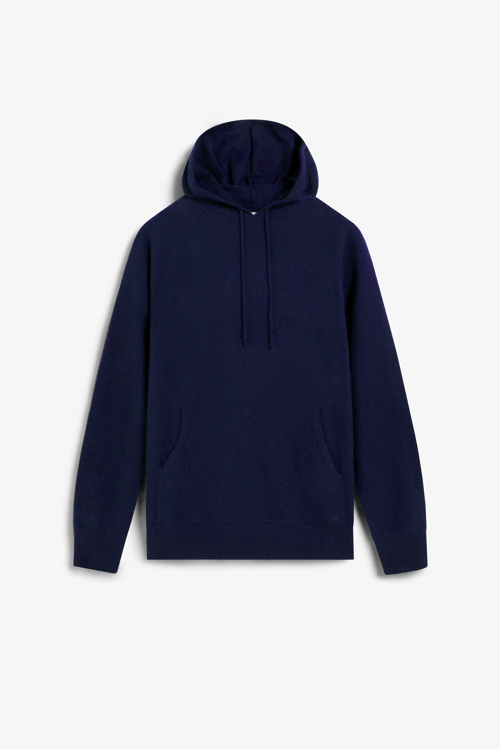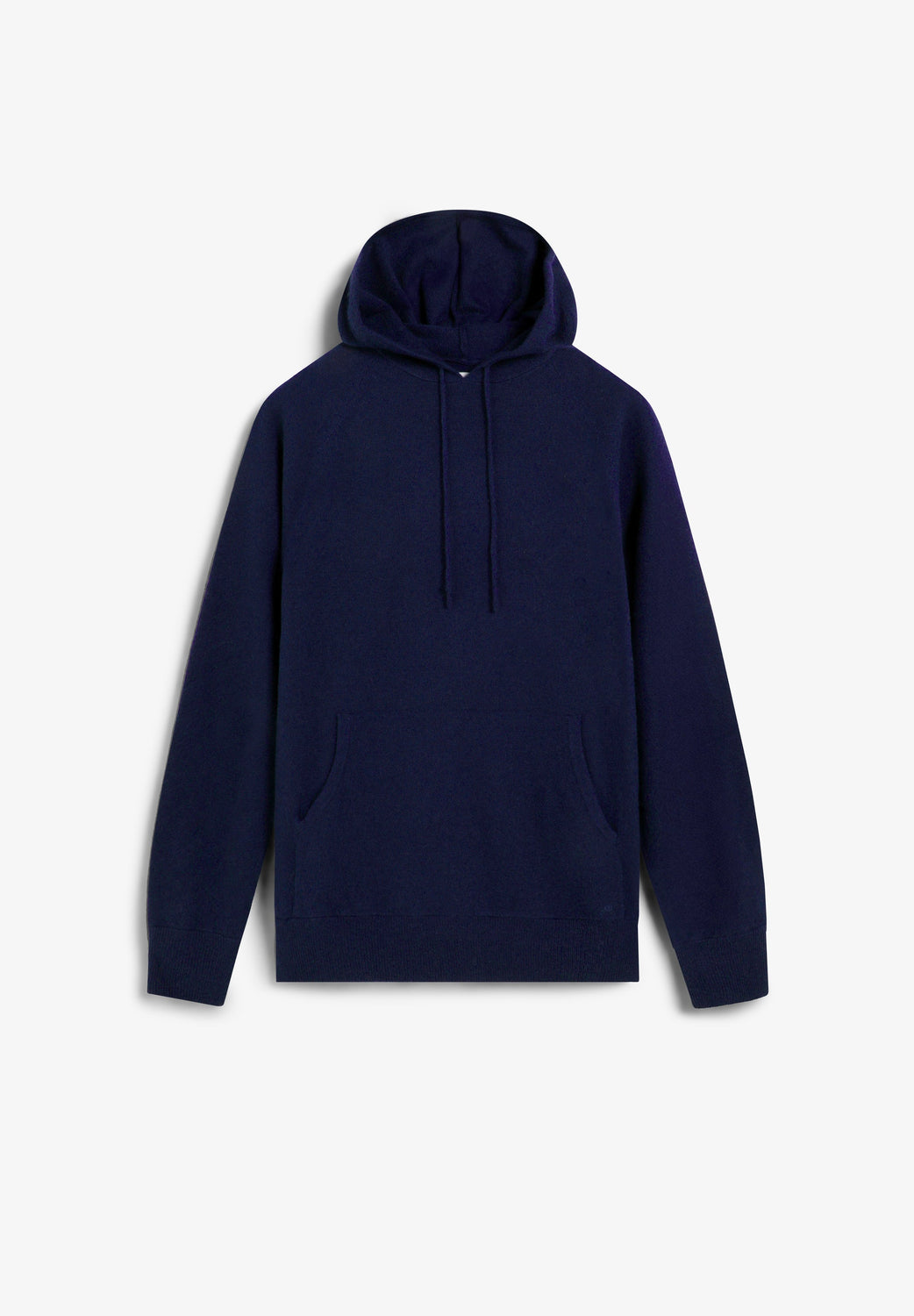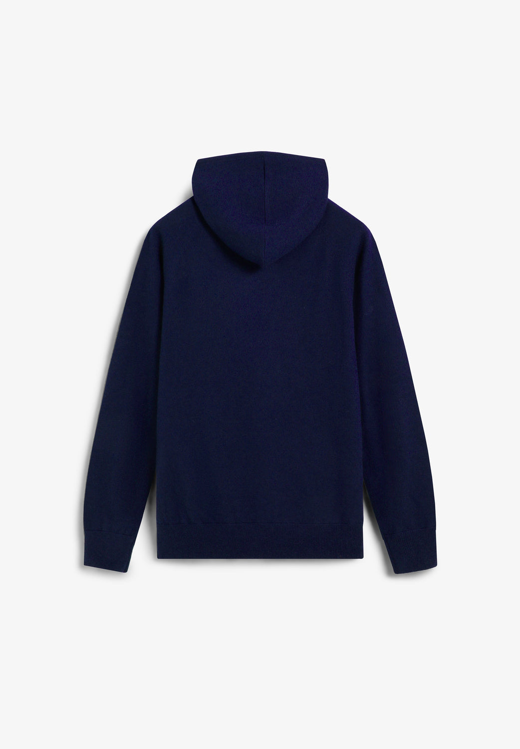 Sweater made of 100% wool. Adjustable drawstring hood. Long sleeves. Pouch pocket on the front. Ribbed cuffs and waistband.