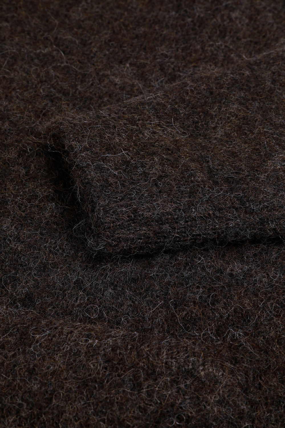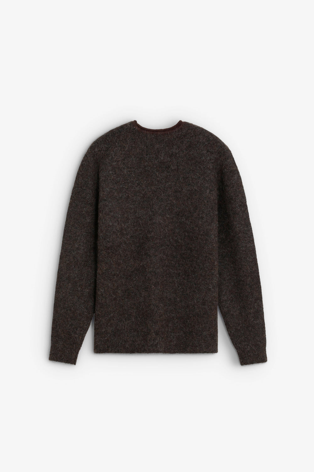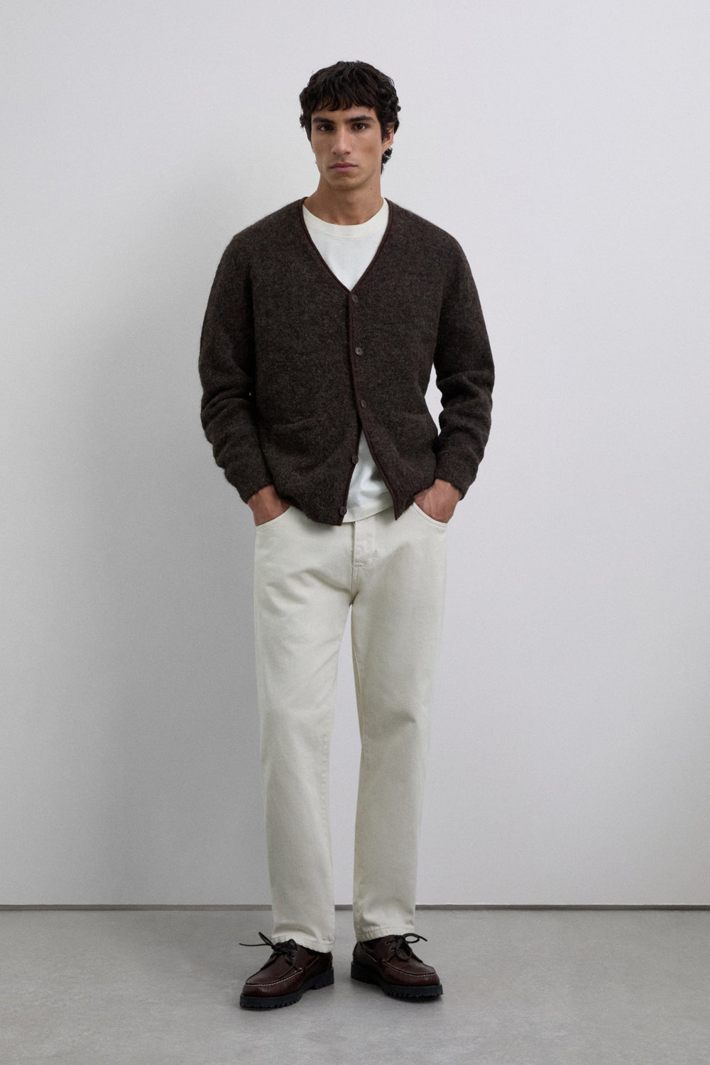 Alpaca cardigan. V-neck. Long sleeves. Front button fastening. Two front pockets. Logo label detail on inside.