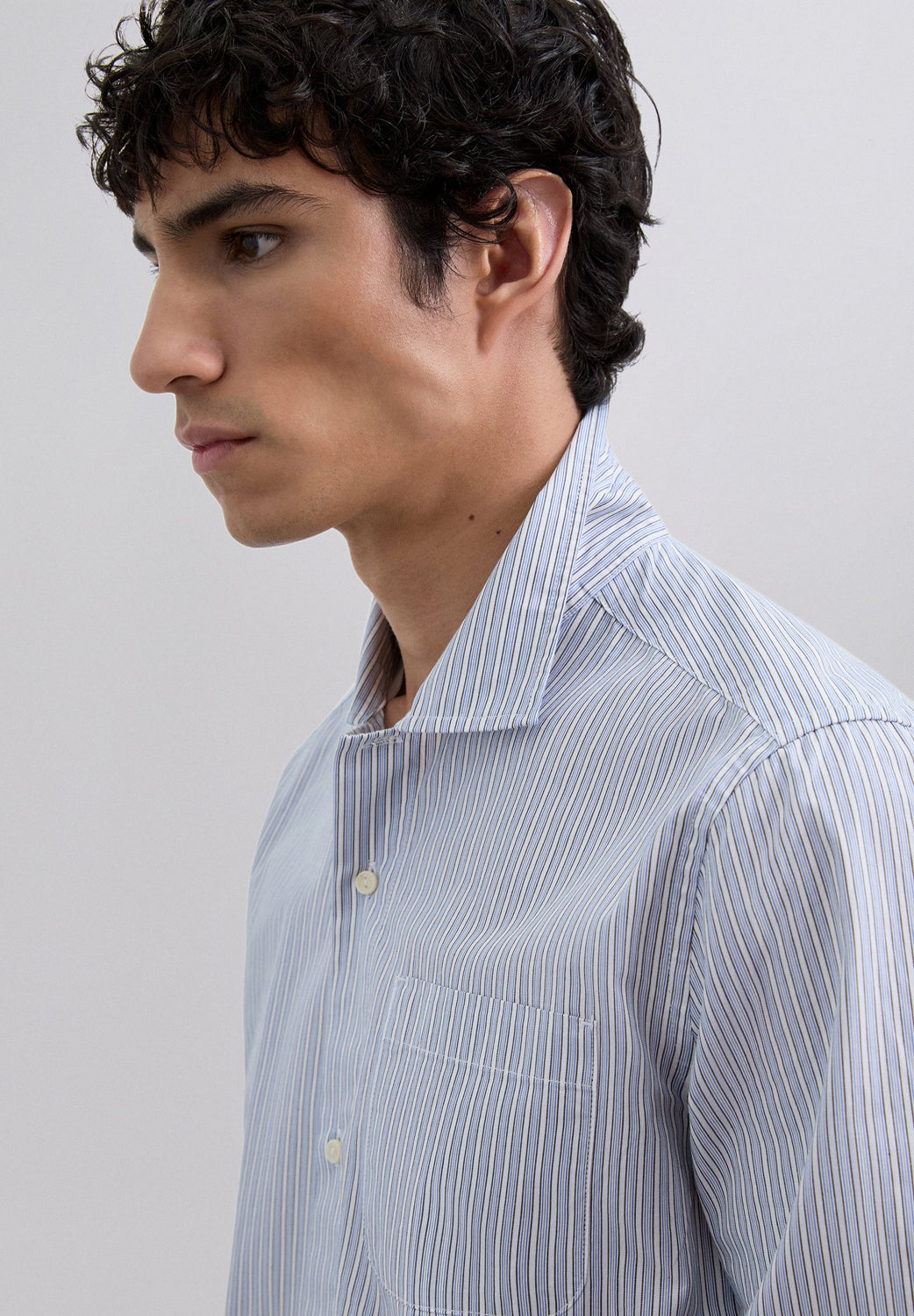 Shirt made of 100% BCI cotton. Long sleeves. Stripe print. Chest pocket. Contrast embroidered skull detail on the cuff.