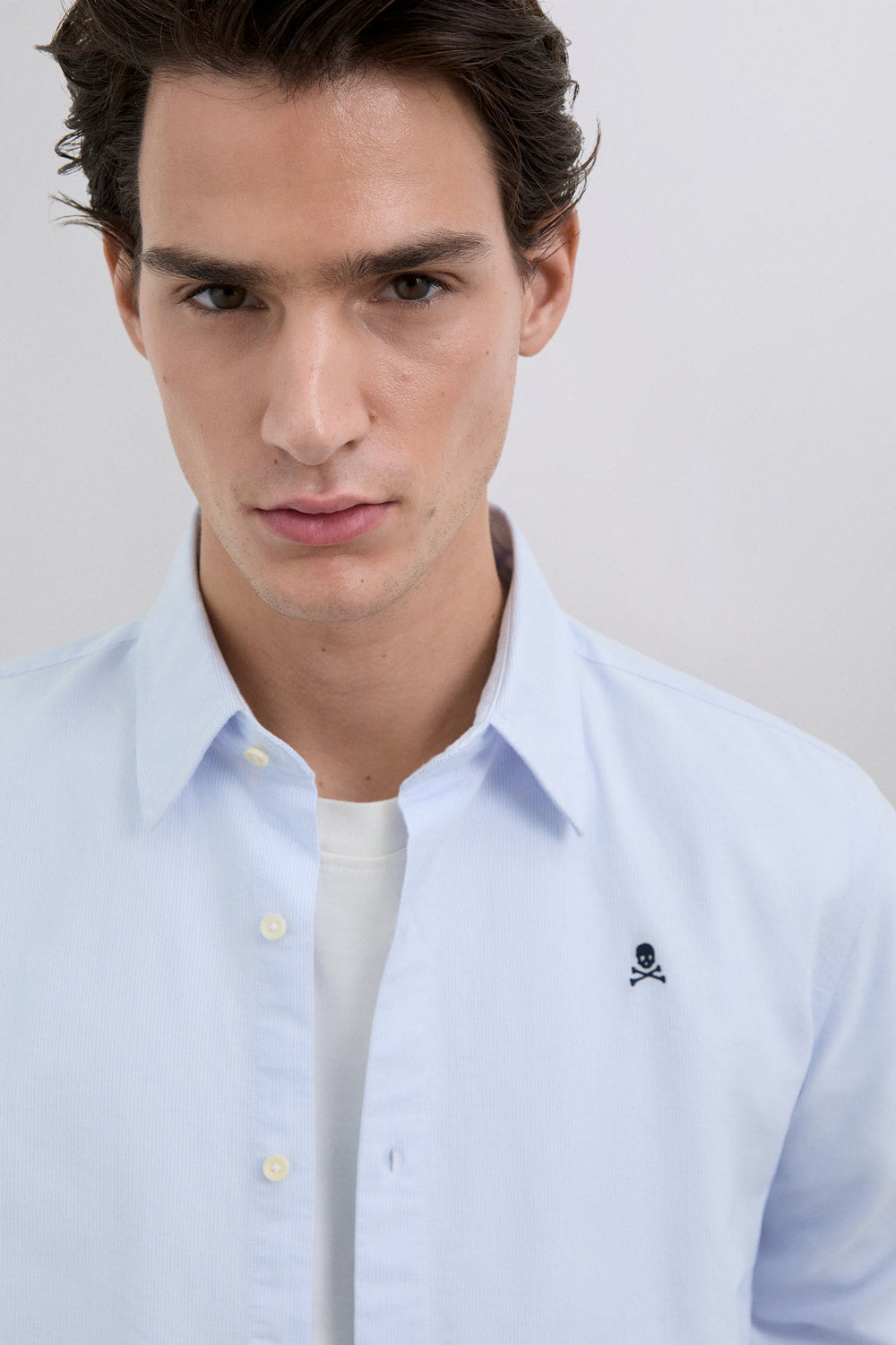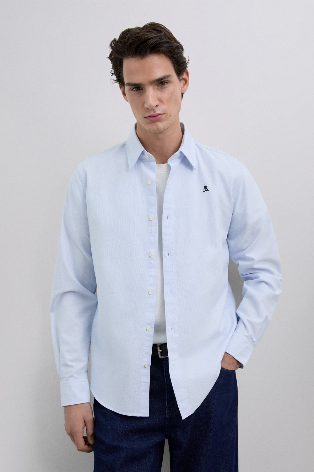 Shirt made of 100% cotton. Stripe print. Regular fit, spread collar and button fastening. Long sleeves with buttoned cuffs. Contrast embroidered skull on the chest.