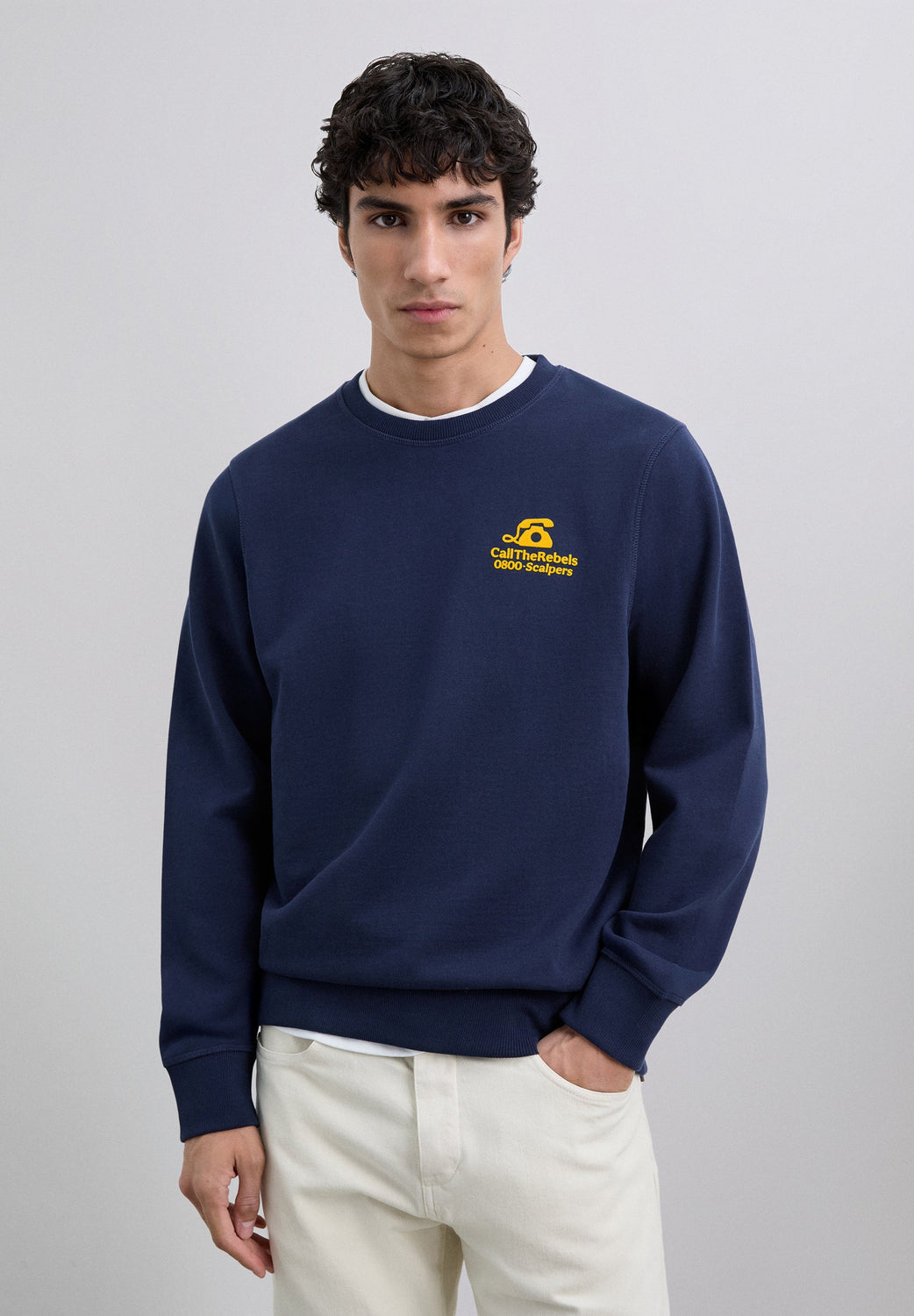 Sweatshirt made of 100% BCI cotton. Round neck. Long sleeves. Regular fit. Contrast embossed print with logo on chest and back. Ribbed trim.