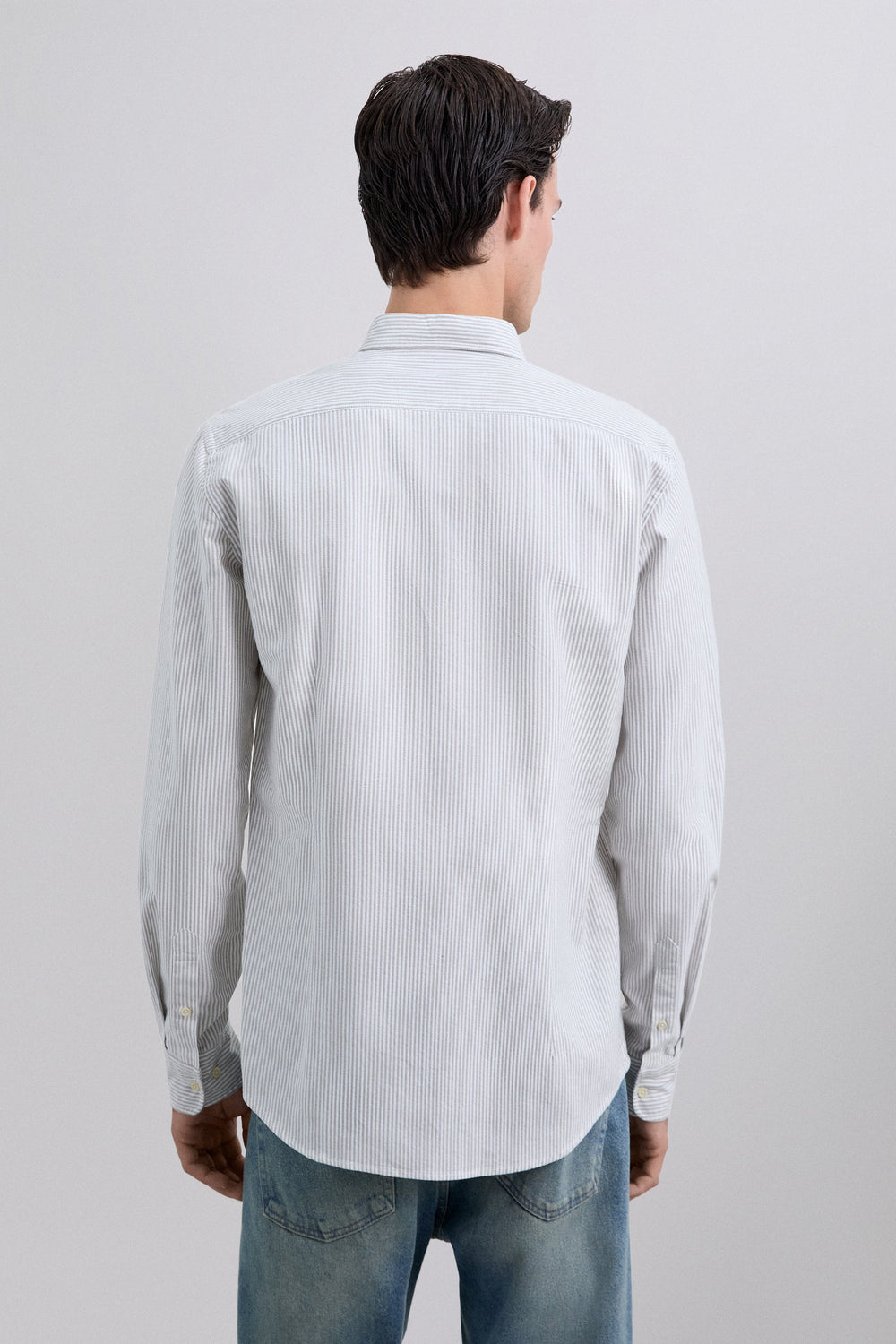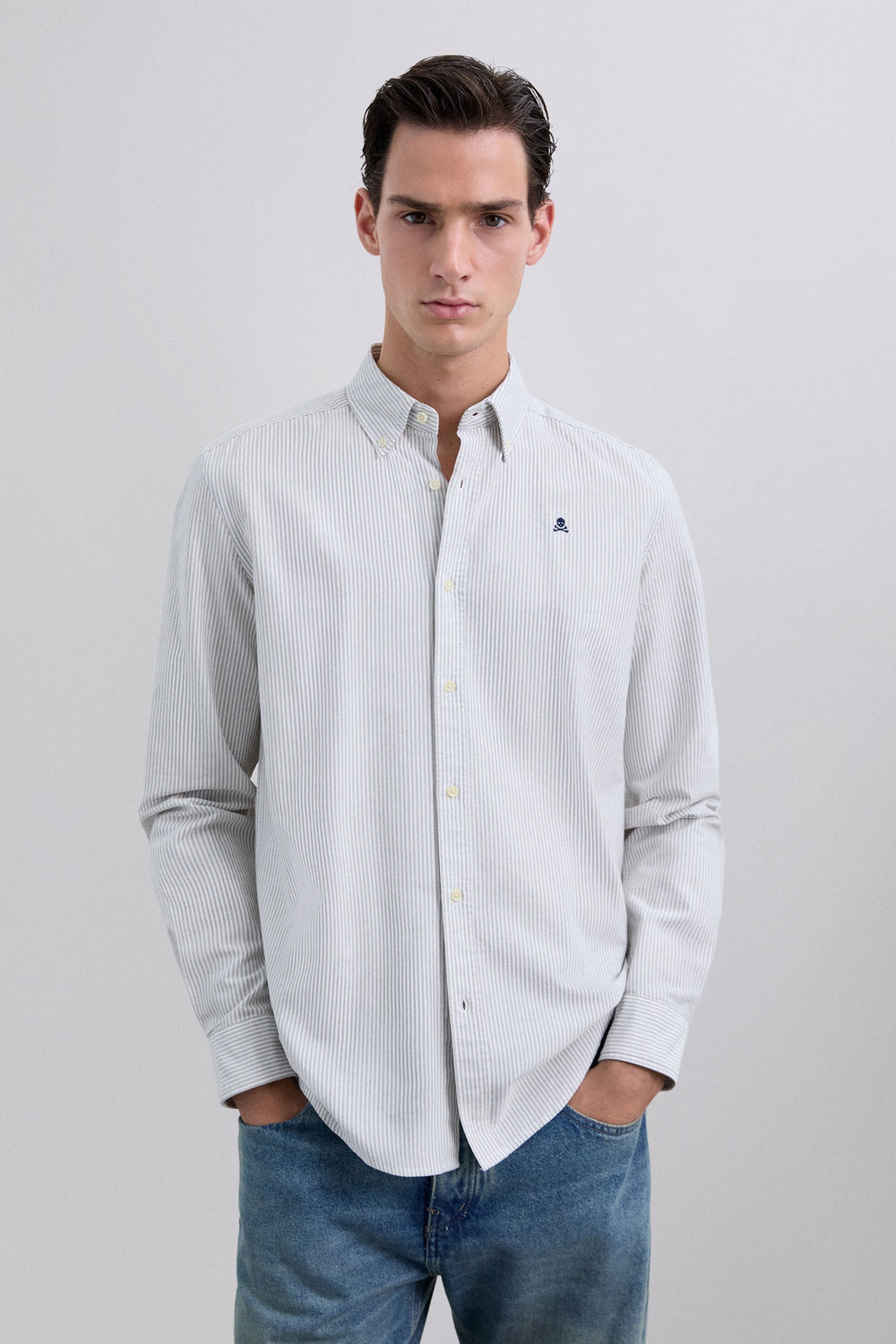 Striped shirt made of 100% BCI cotton. Classic collar, button fastening, regular fit, contrast skull on chest. Buttoned cuffs.
