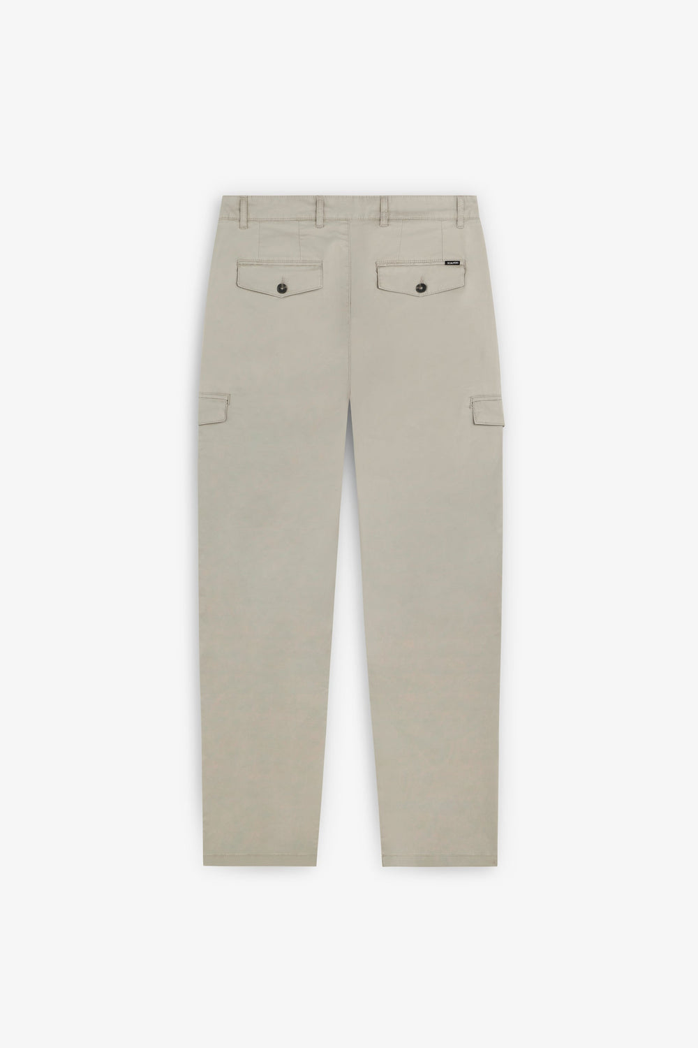 Cargo trousers made of BCI cotton. Slim fit. Two front pockets, back pockets with button fastening and side flap pockets. Belt loops and button and zip fastening. Embroidered logo on the back pocket.
