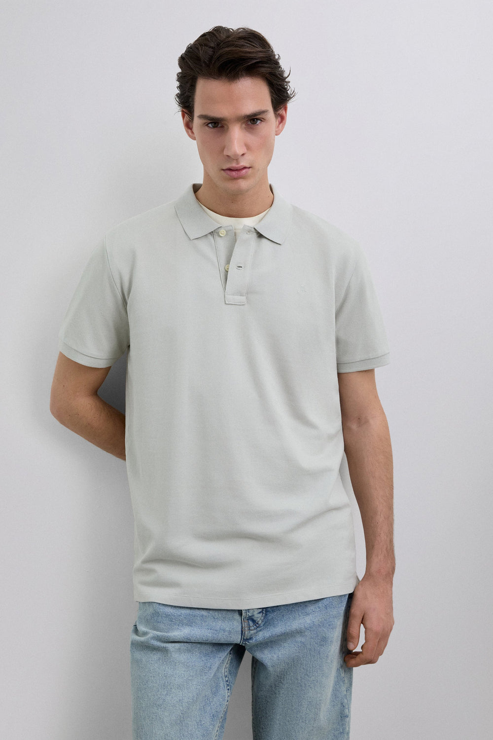 Basic polo shirt made of 100% BCI cotton. Regular fit, classic collar and button fastening. Short sleeves and matching embroidered skull.