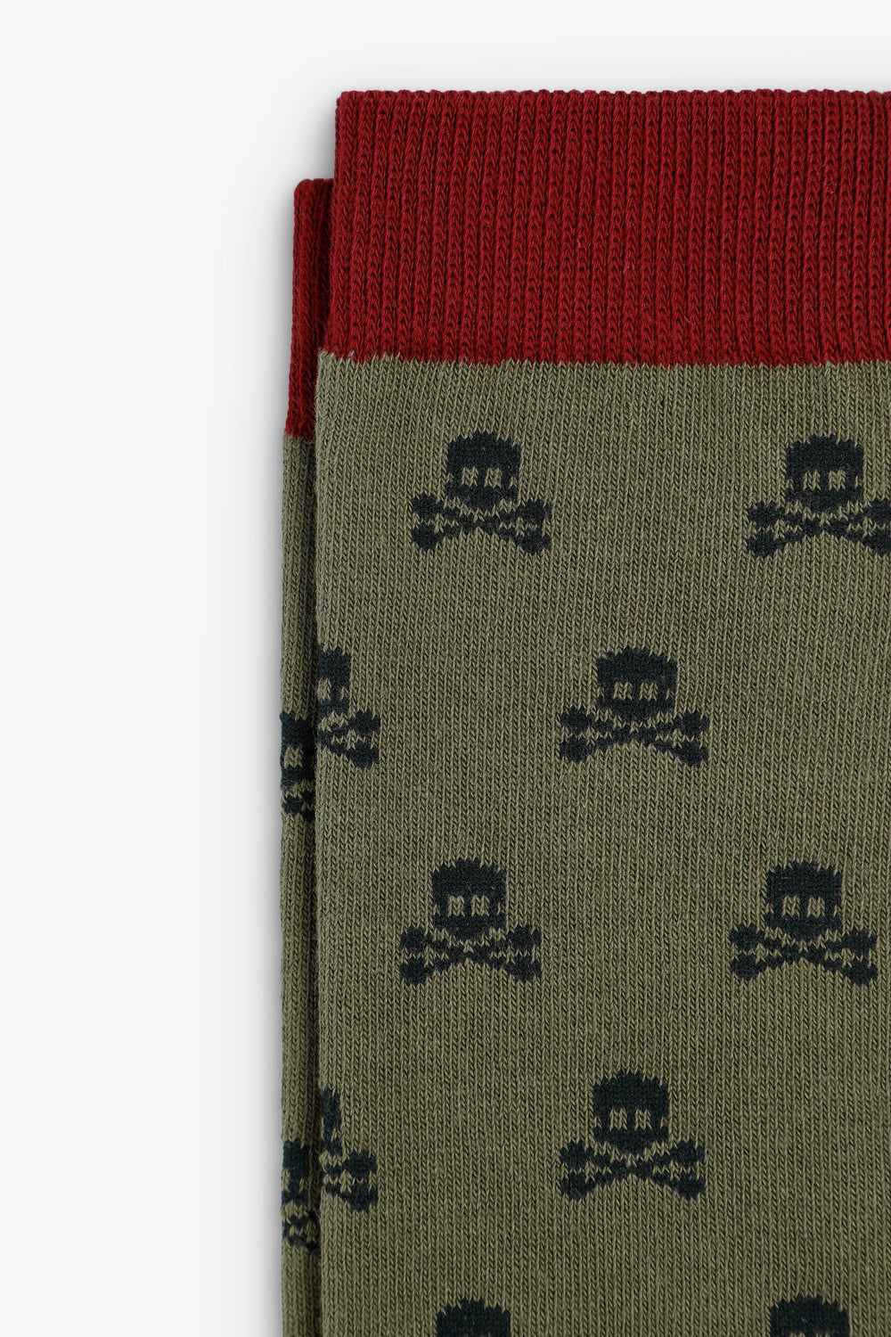 Long socks in a cotton blend. Skull print. Contrast heel and toe. Contrast logo detail.