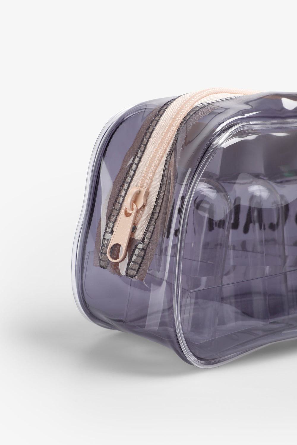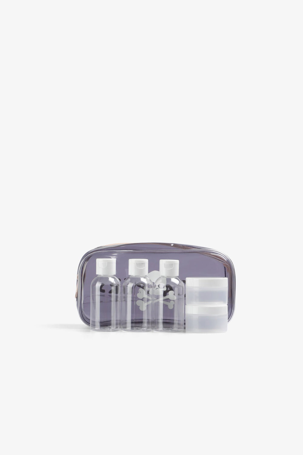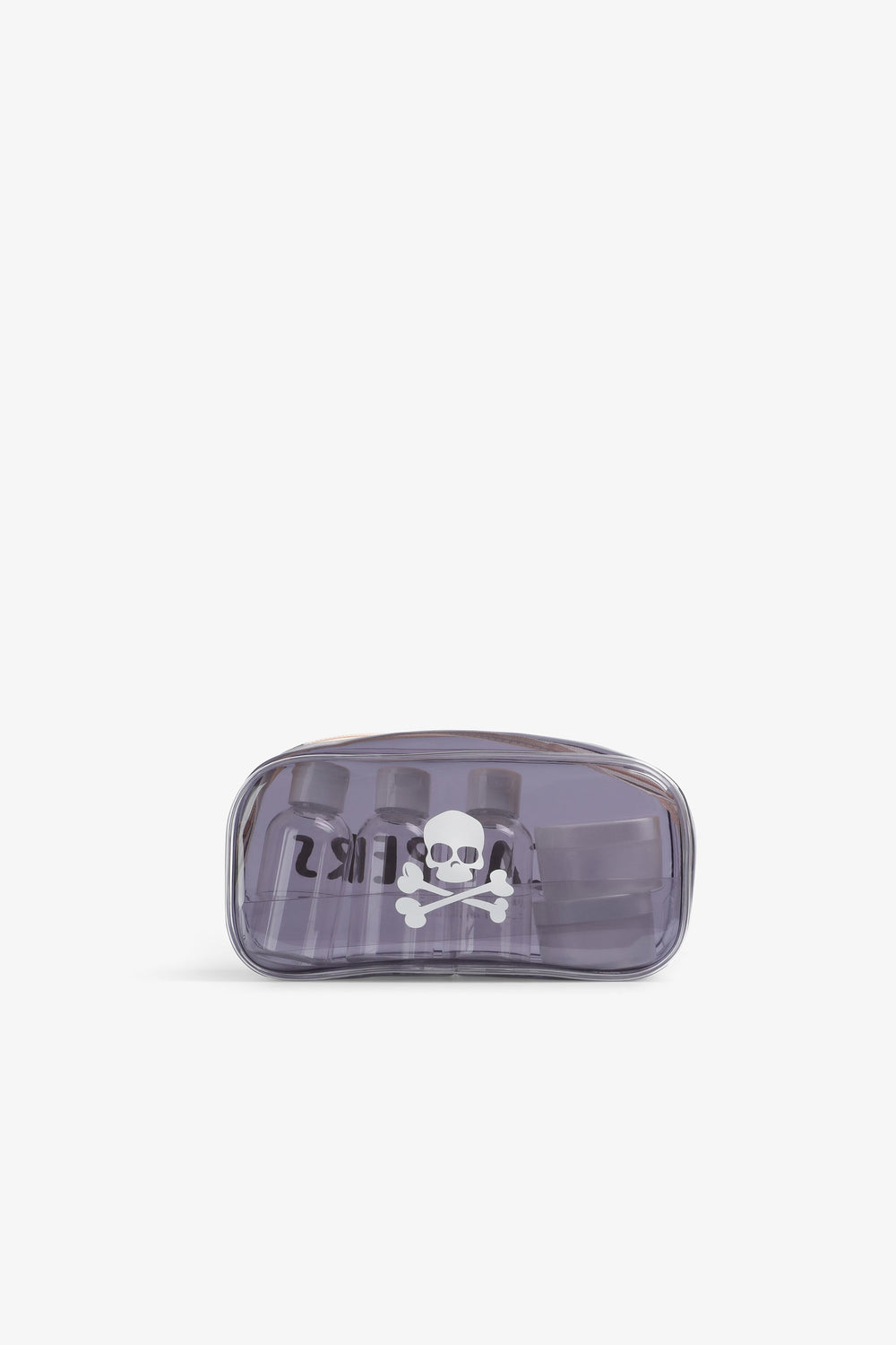 Toiletry bag made of 100% PVC with contrasting logo and skull. Zip fastening.