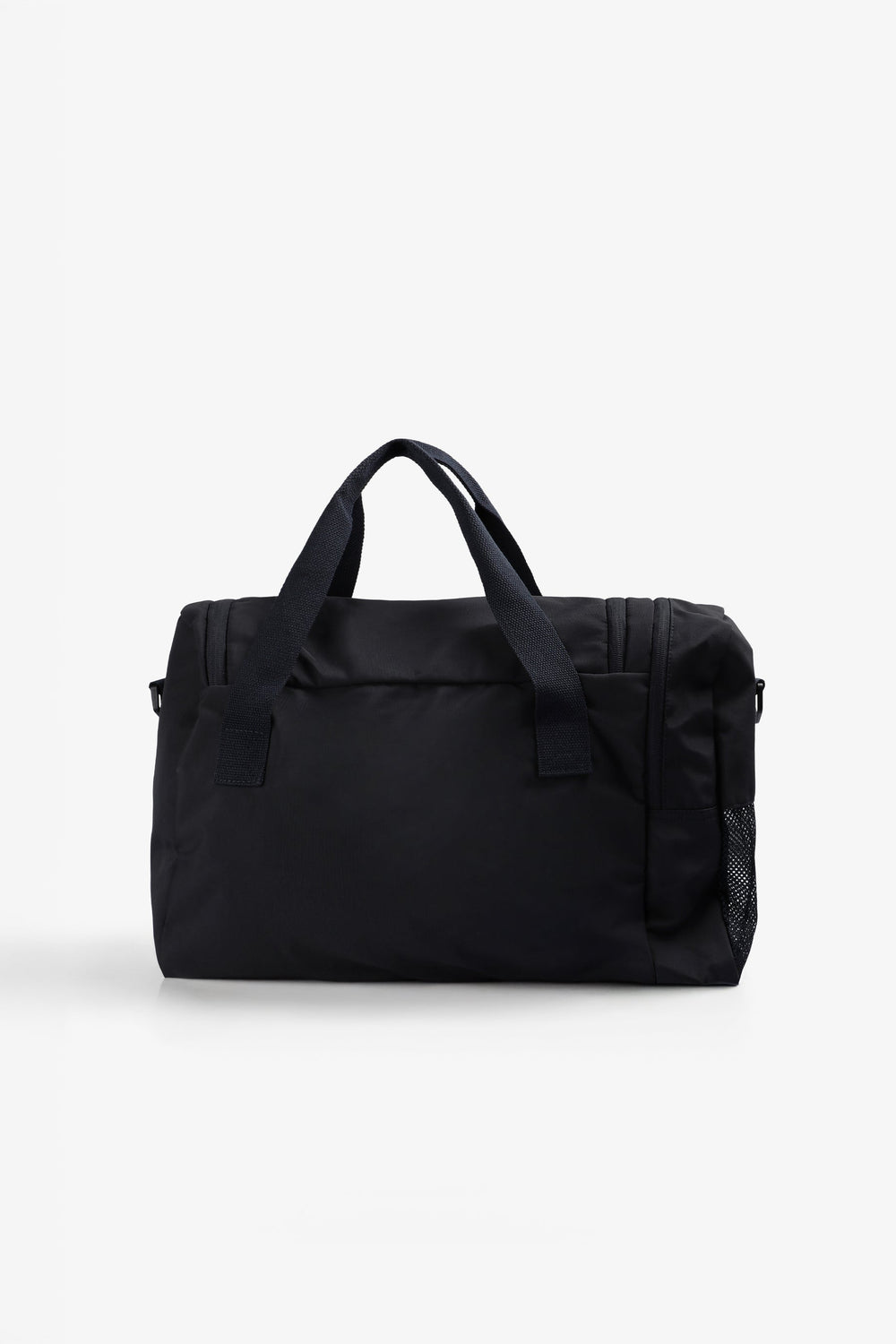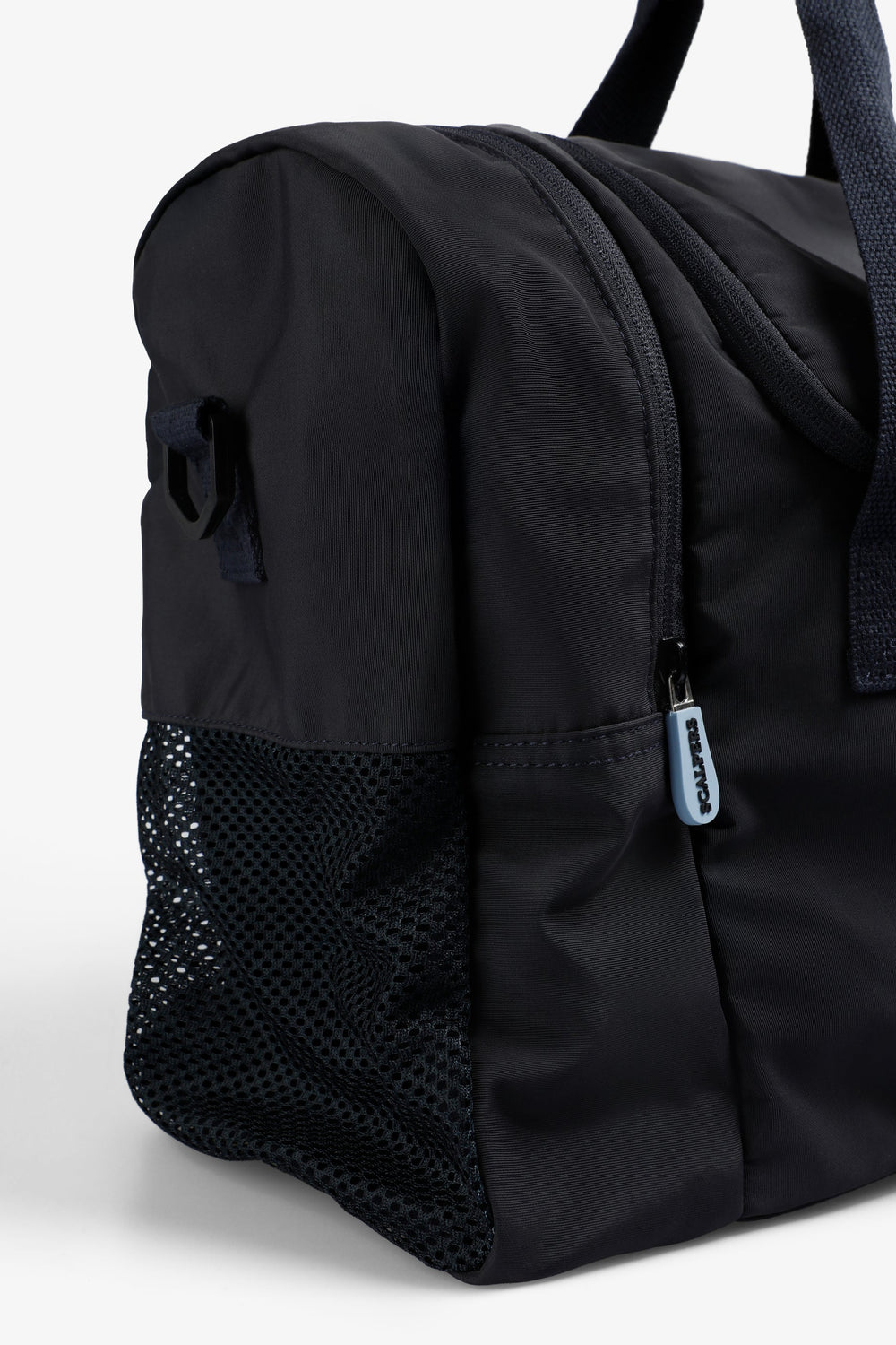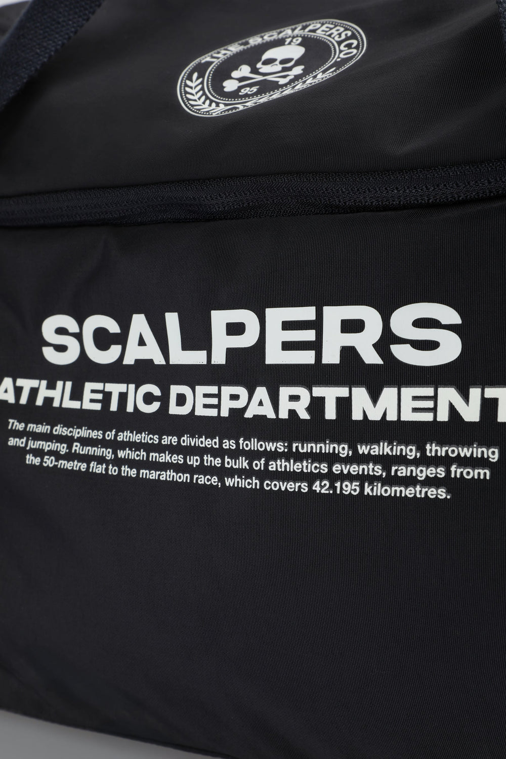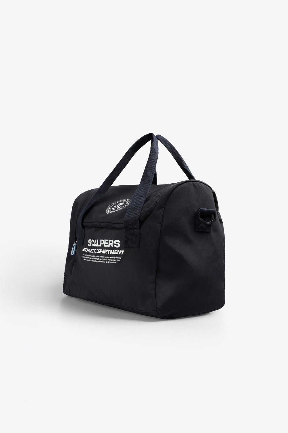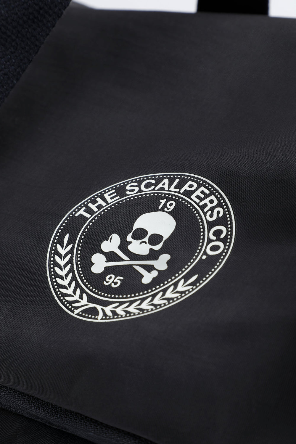 Bag made of a technical fabric. Main compartment with zip closure. One side pocket with zip. Short main shoulder strap and long detachable strap. Front logo and skull print. Logo detail on zip.
