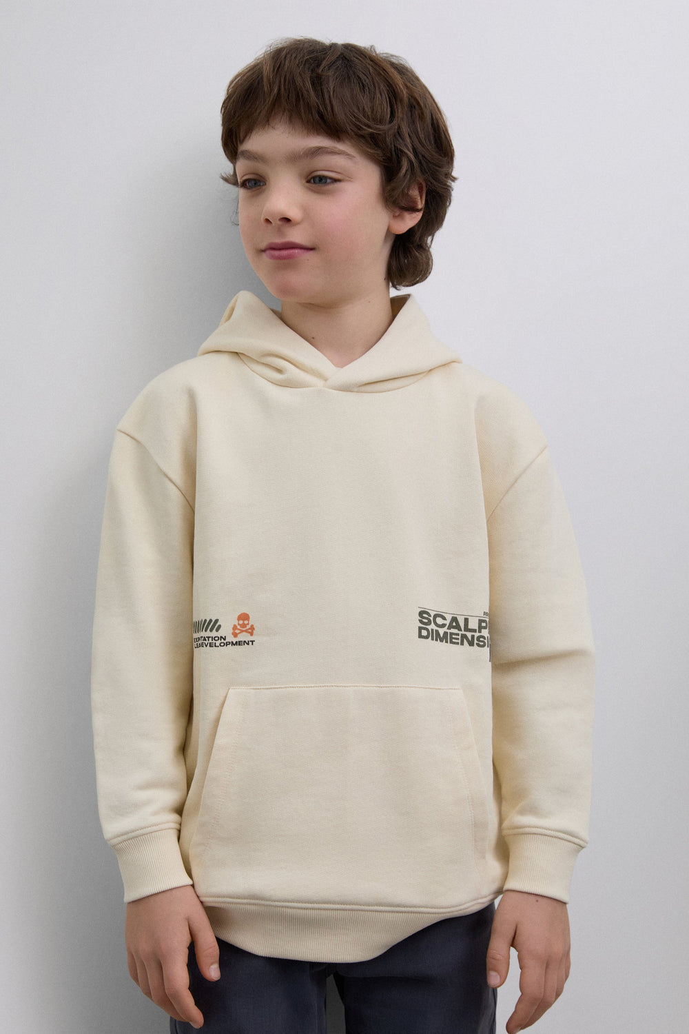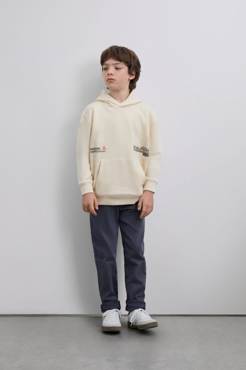 Sweatshirt with hood made of 100% BCI cotton. Long sleeves. Ribbed trim. Front pouch pockets. Print on the back and front.