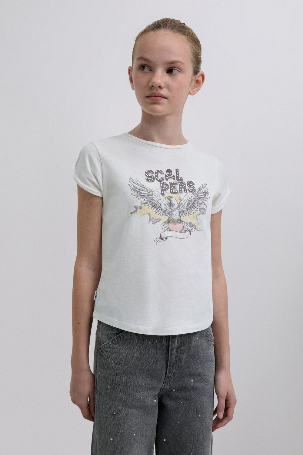 T-shirt made of 100% BCI cotton. Short sleeve. Round neck. Print on front.