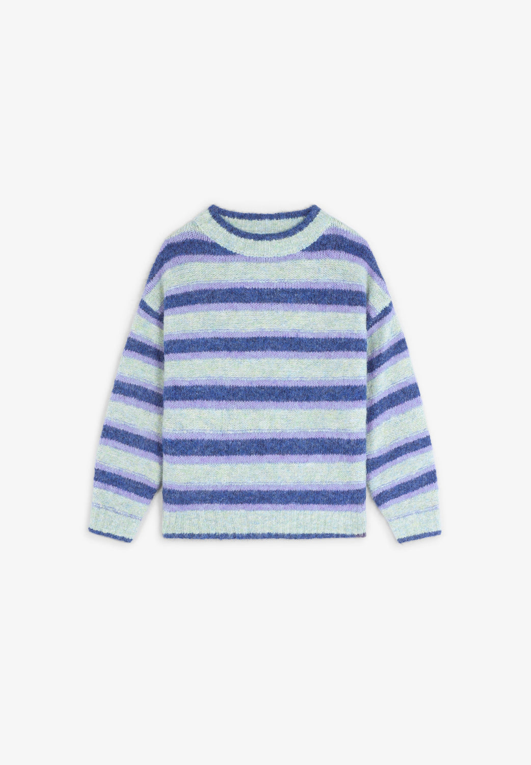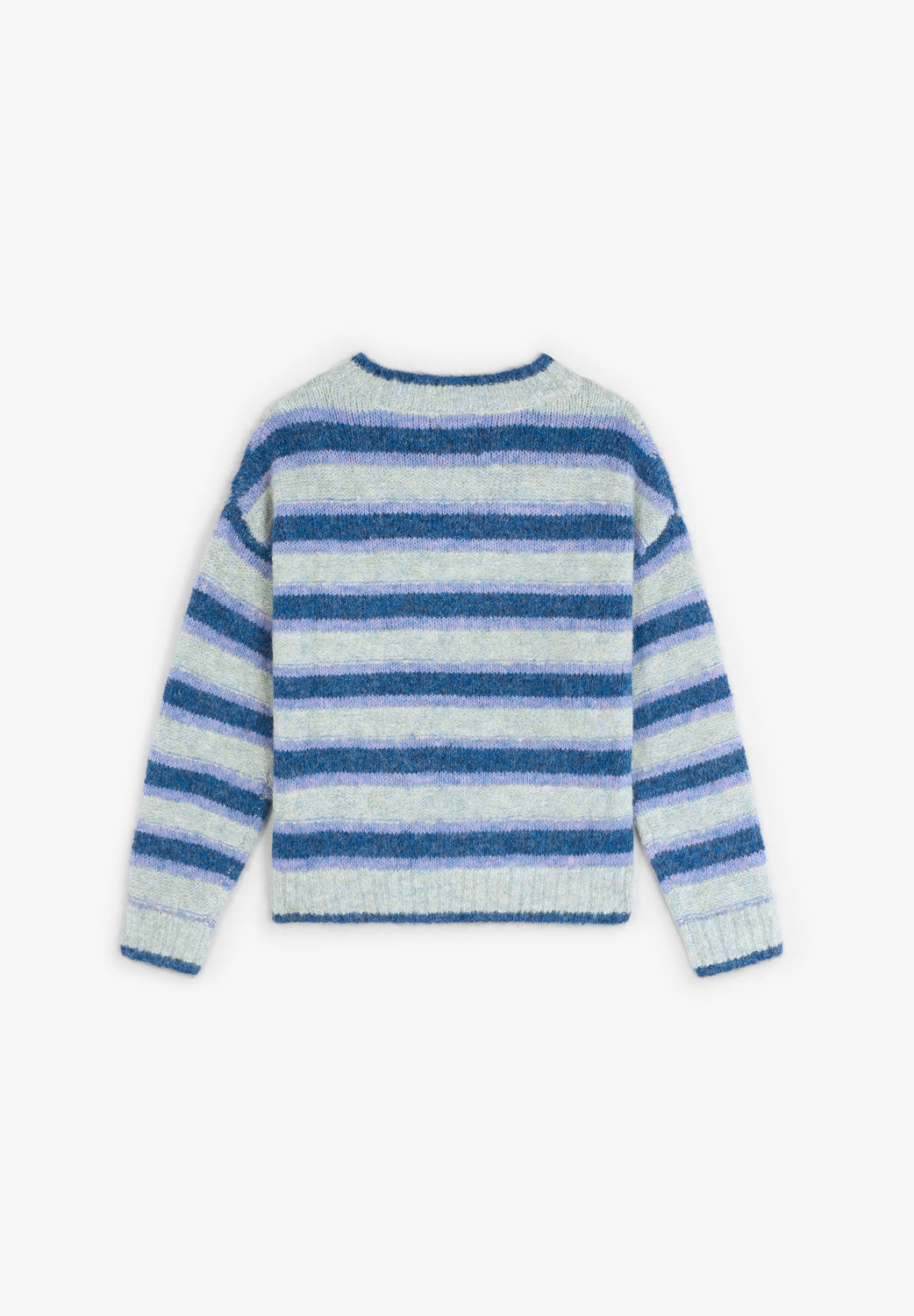 Knit sweater with stripe print. Long sleeves. Round neck. Ribbed trim.