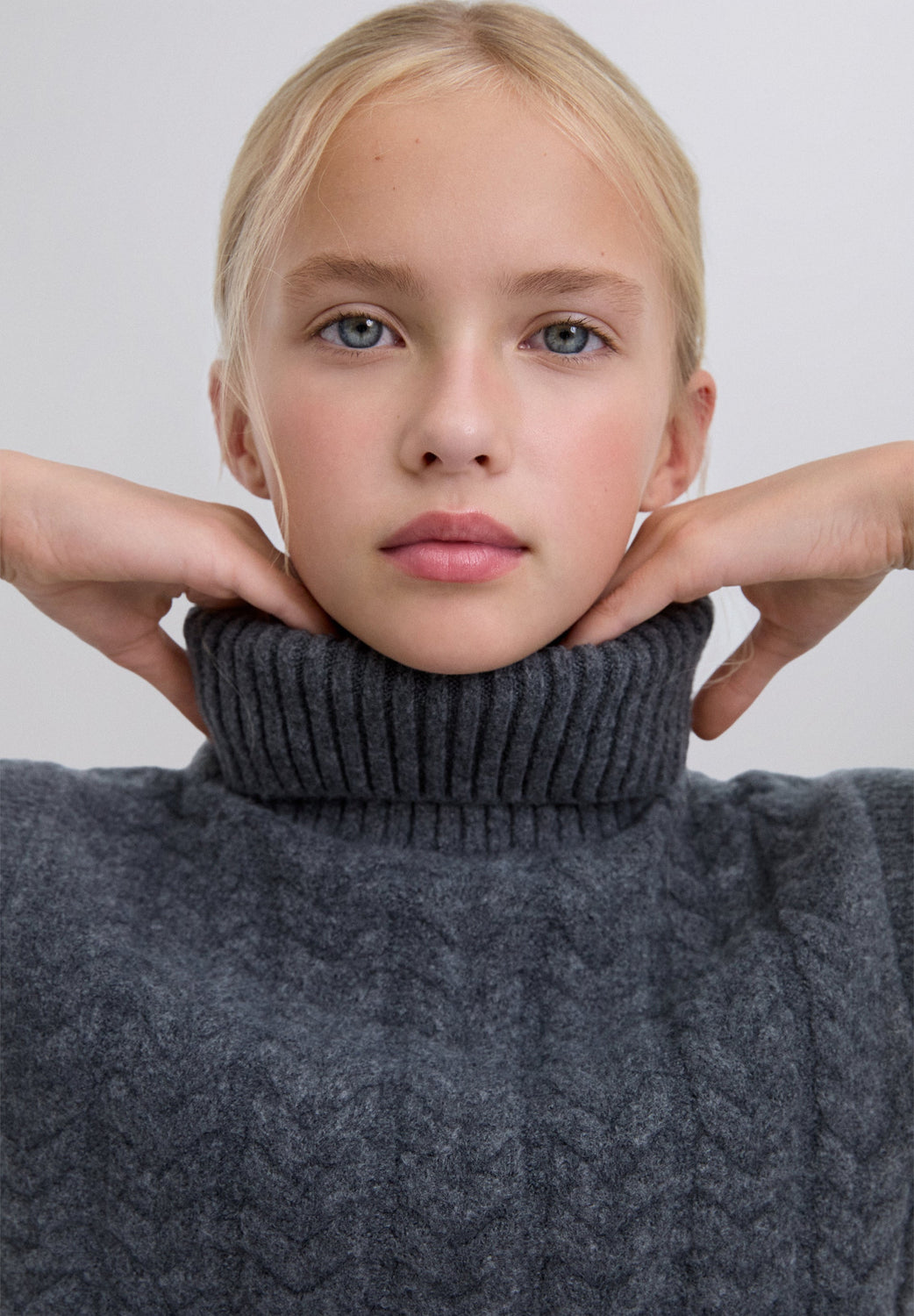 Knit vest. Roll neck. Ribbed trim. Metal skull tag detail.