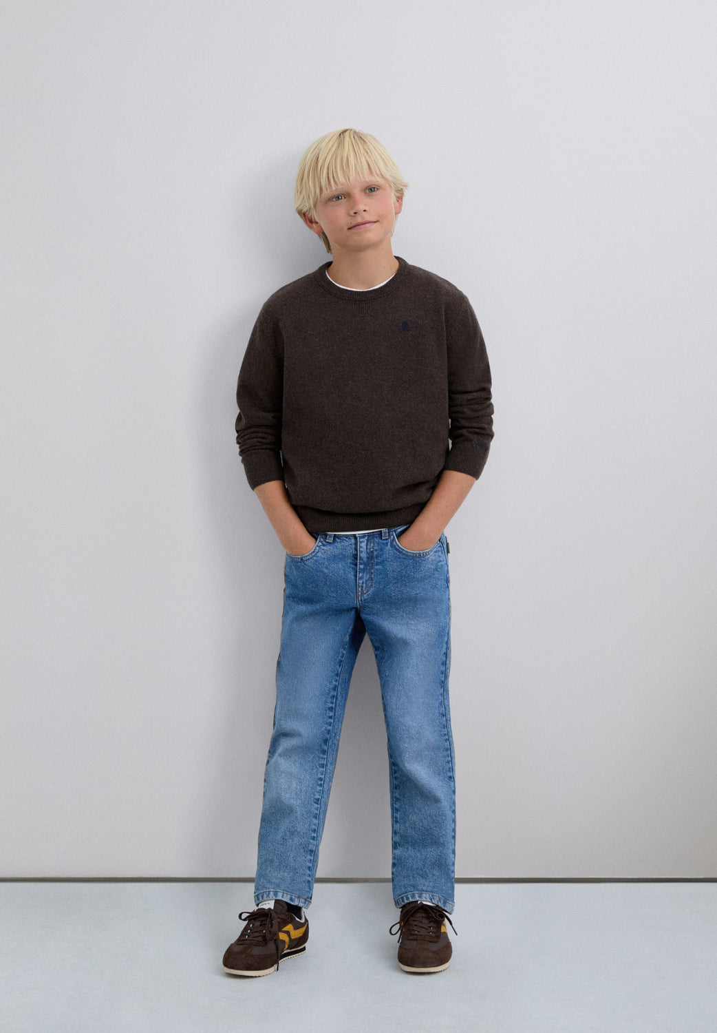 Sweater made of wool and polyamide blend. Regular fit. Round neck. Long sleeves. Contrast embroidered skull detail. Ribbed trim. Skull patch detail on the elbow pads.