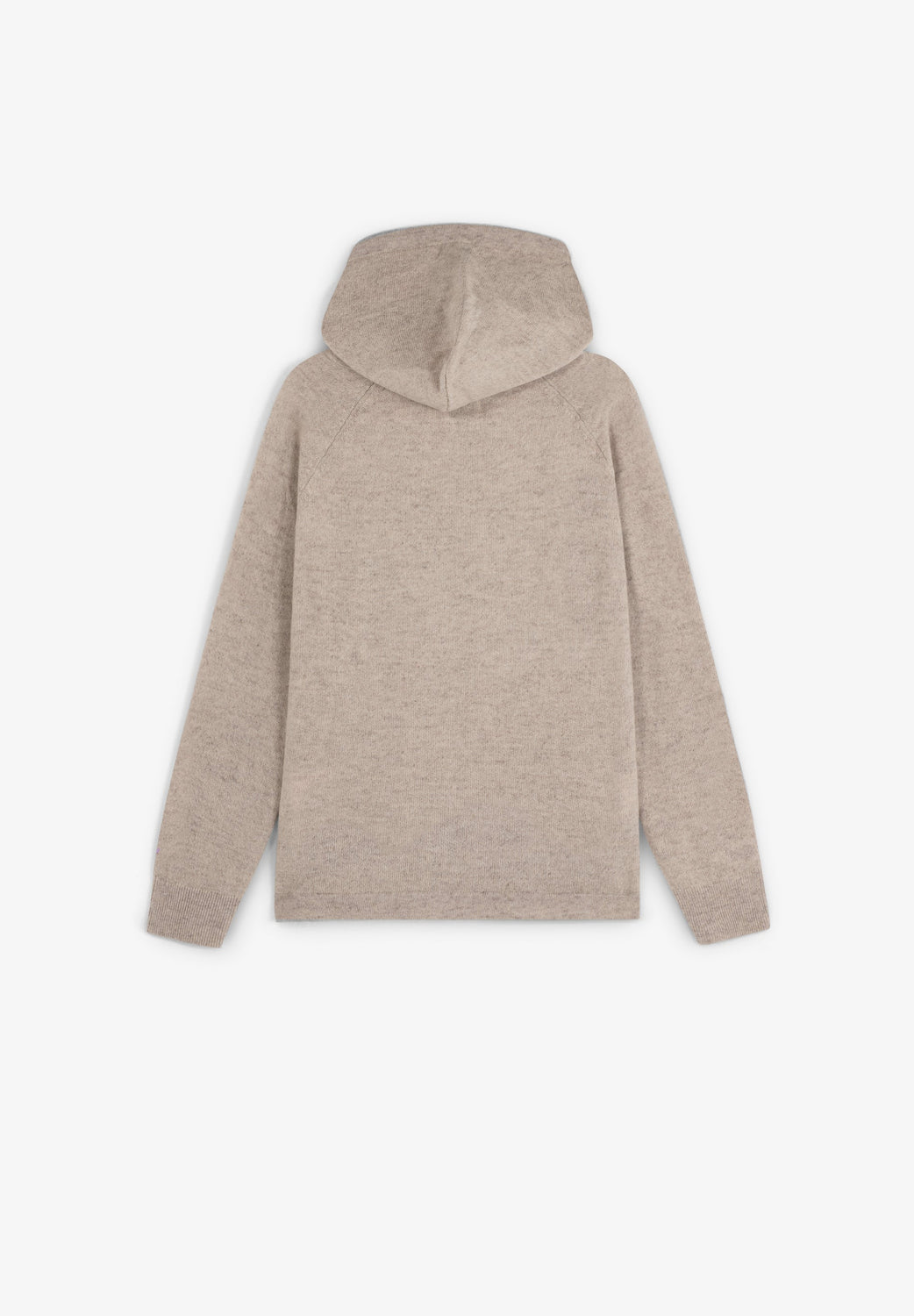 Sweater with adjustable hood. Contrast skull print on front. Long sleeves.