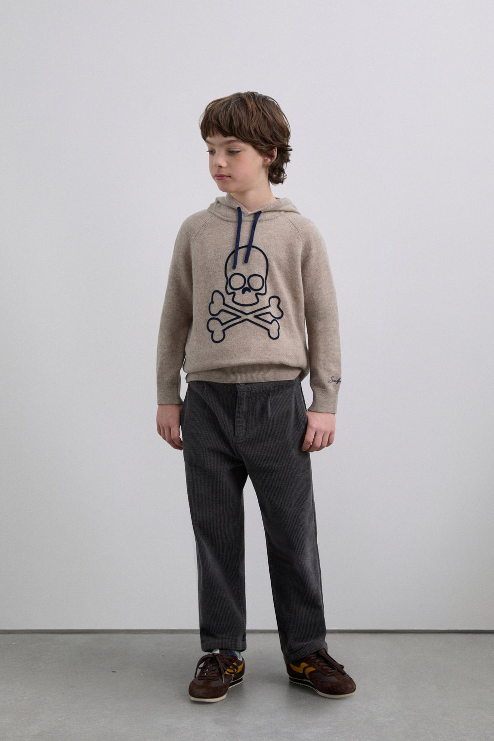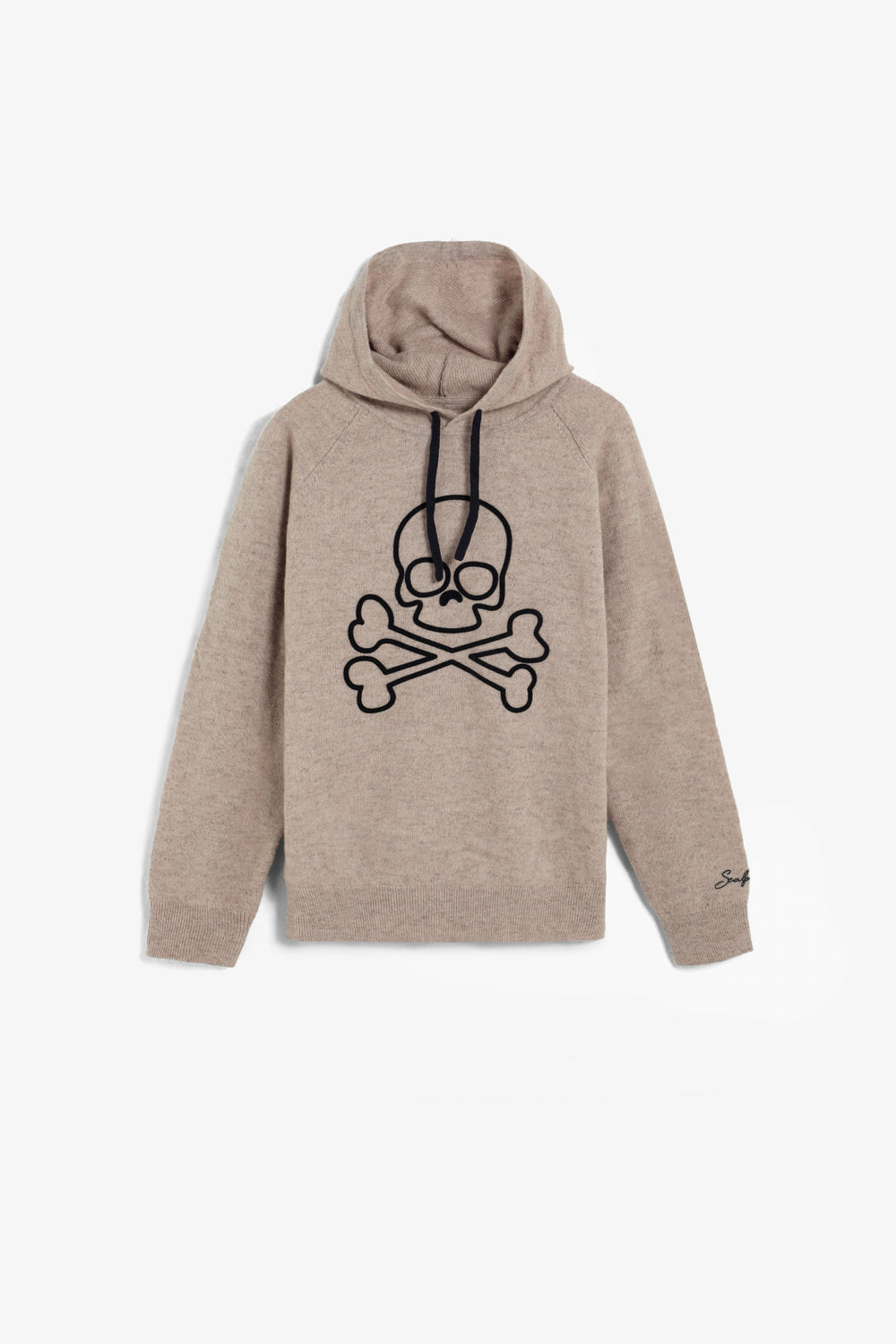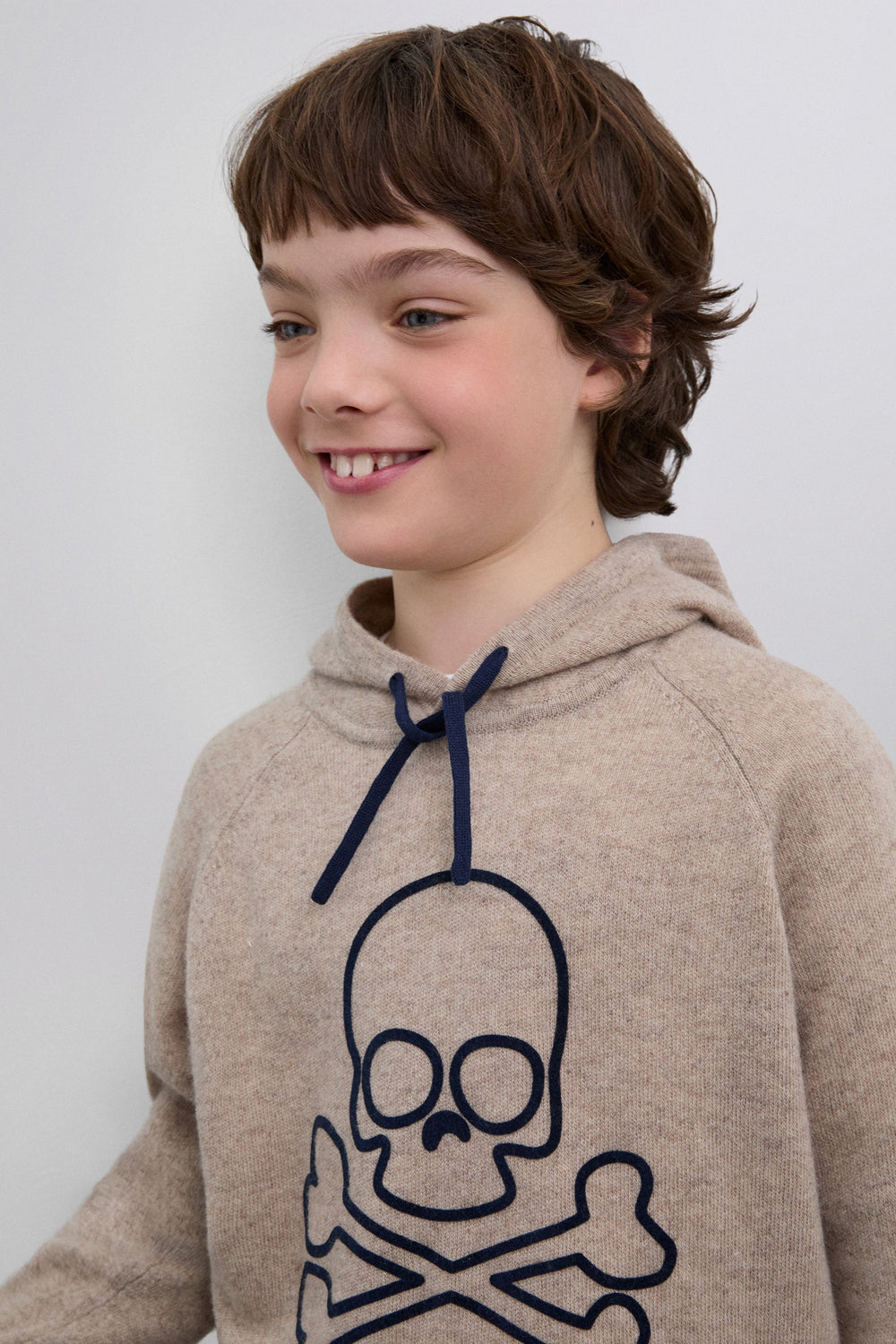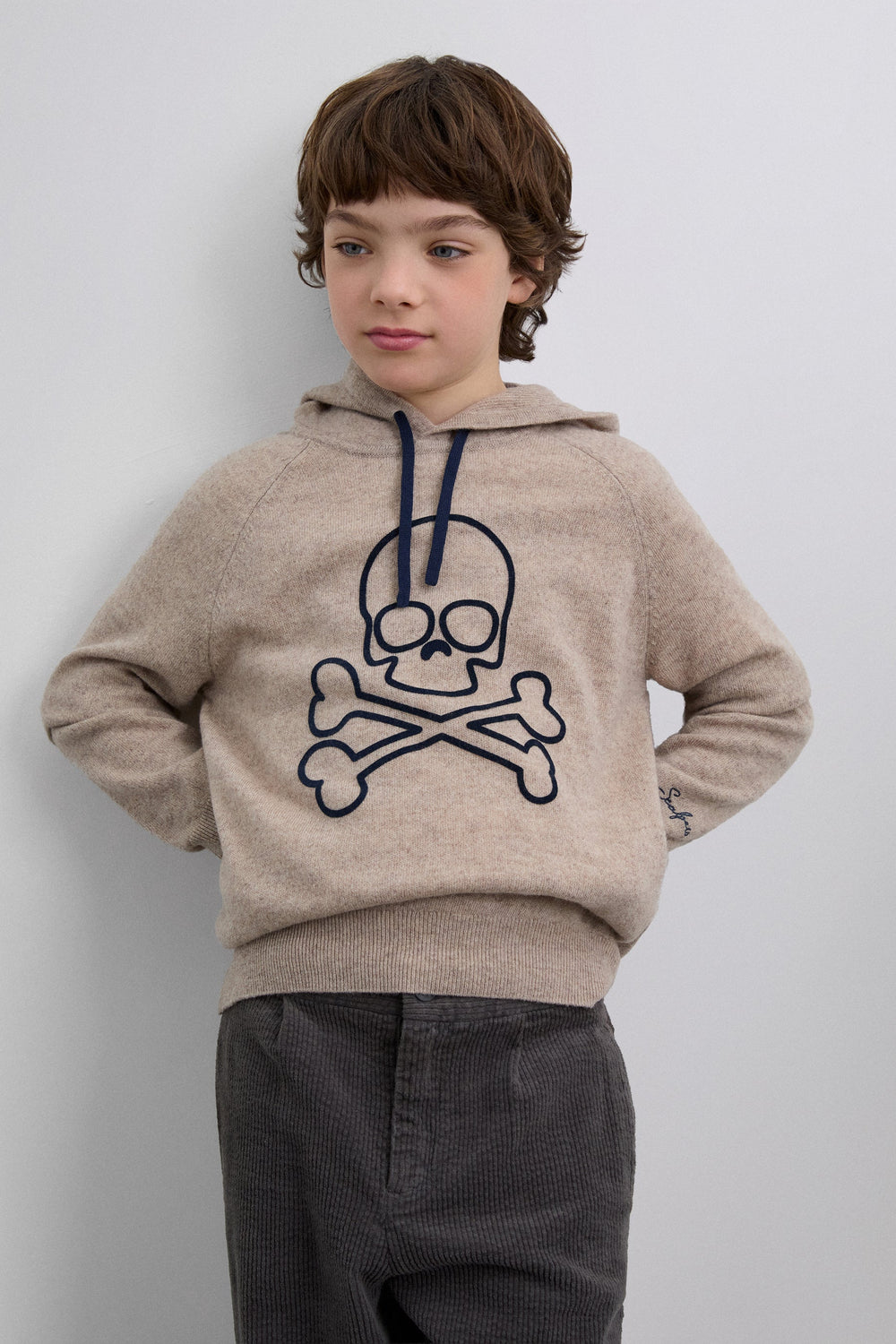 Long sleeve hooded sweater. Regular fit. Collar with adjustable hood. Contrast front skull detail.