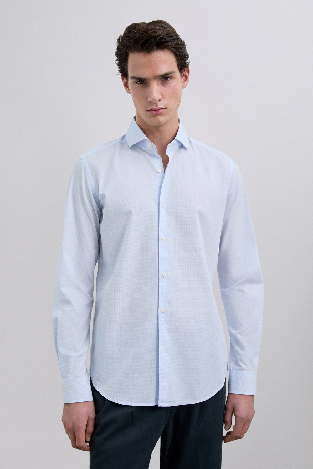 Shirt made of 100% BCI cotton. Regular Fit. Long sleeves. Button-up front and buttoned cuffs.