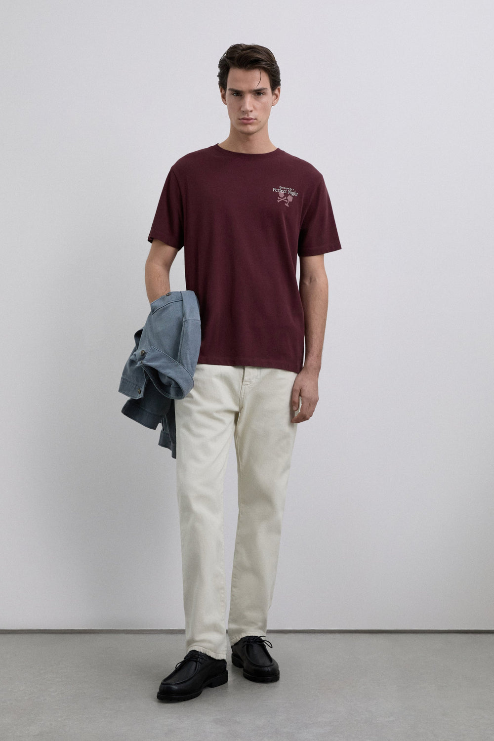 T-shirt made of 100% BCI cotton. Short sleeve. Round neck. Print on the chest and back with skull and logo.