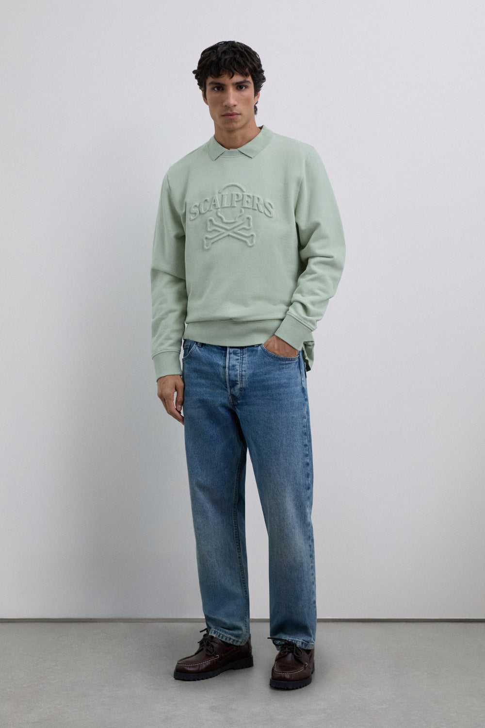 Sweatshirt made of 100% BCI cotton. Regular fit. Long sleeves. Round neck, ribbed trim on sleeves and waistband. Raised logo and skull on the front.