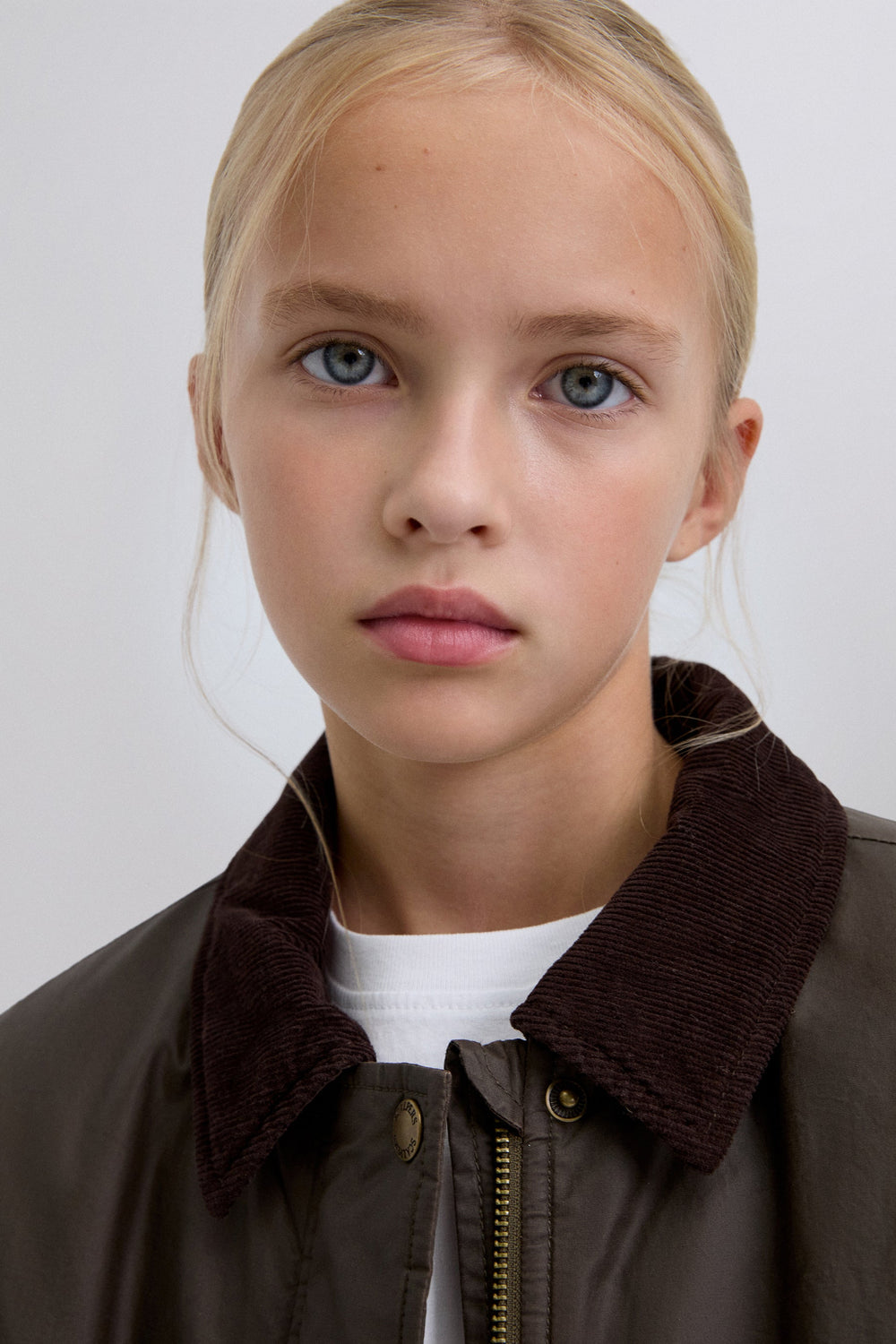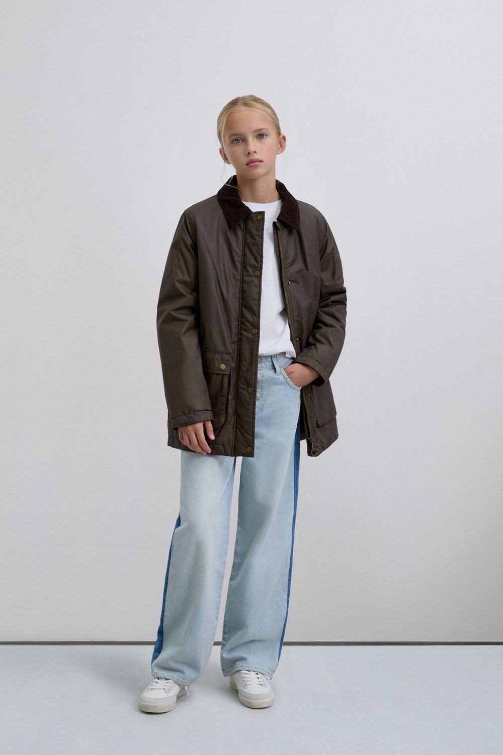 Jacket made of 100% BCI cotton. Contrast shirt collar. Long sleeves. Two front pockets with buttoned flap. Front button fastening. Logo print detail on sleeve.