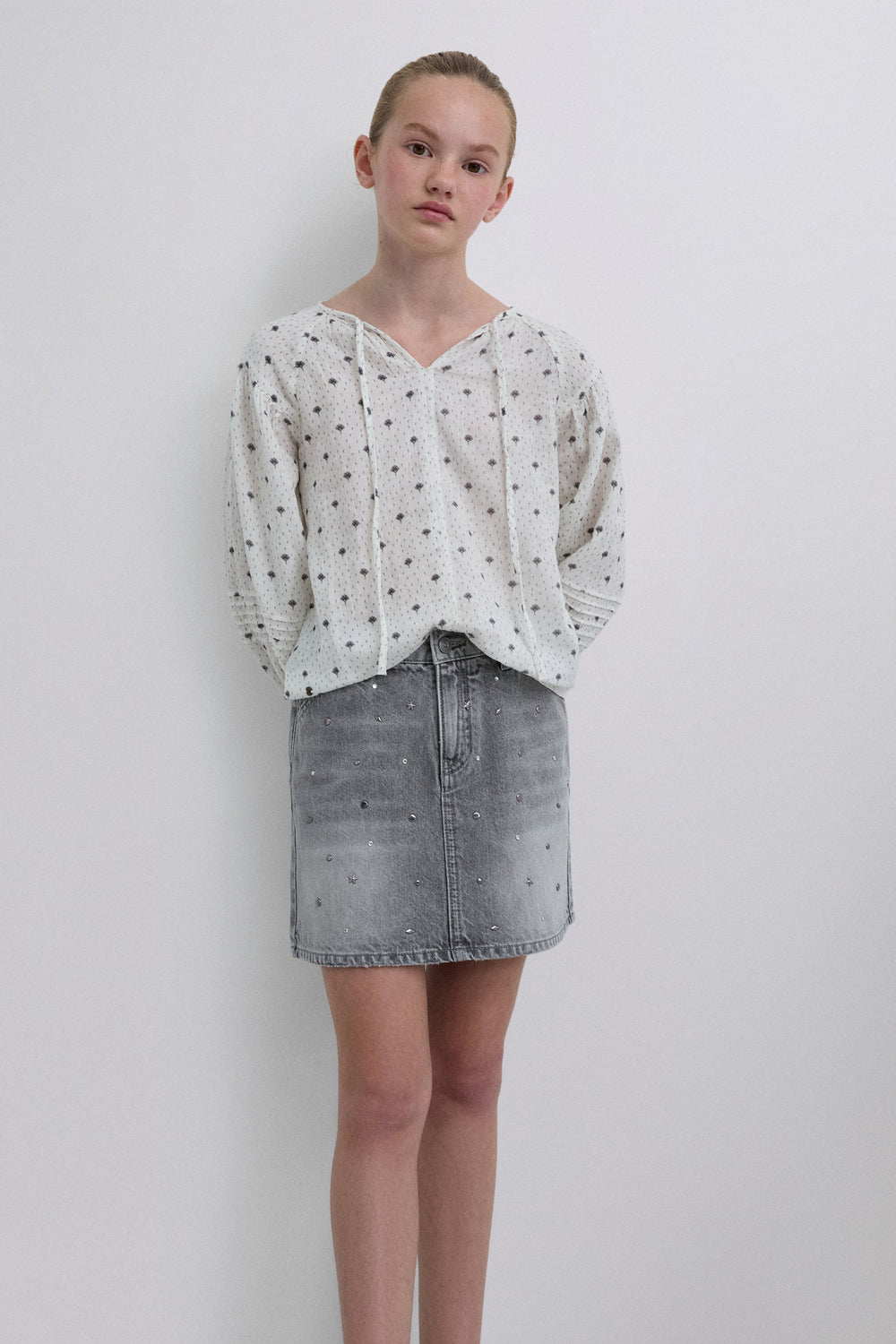 DENIM MINI SKIRT WITH STUDS