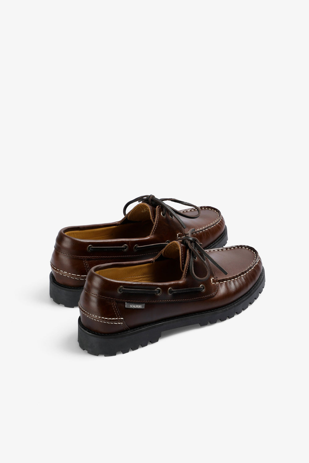 Deck shoes in a leather blend. Lace-up fastening and chunky track sole. Side label