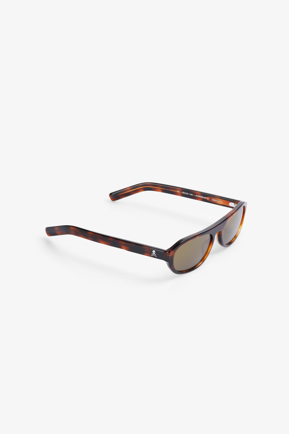 Faux tortoiseshell-finish acetate frames. UV protection lenses. Logo detail on sides. Includes a protective cover.