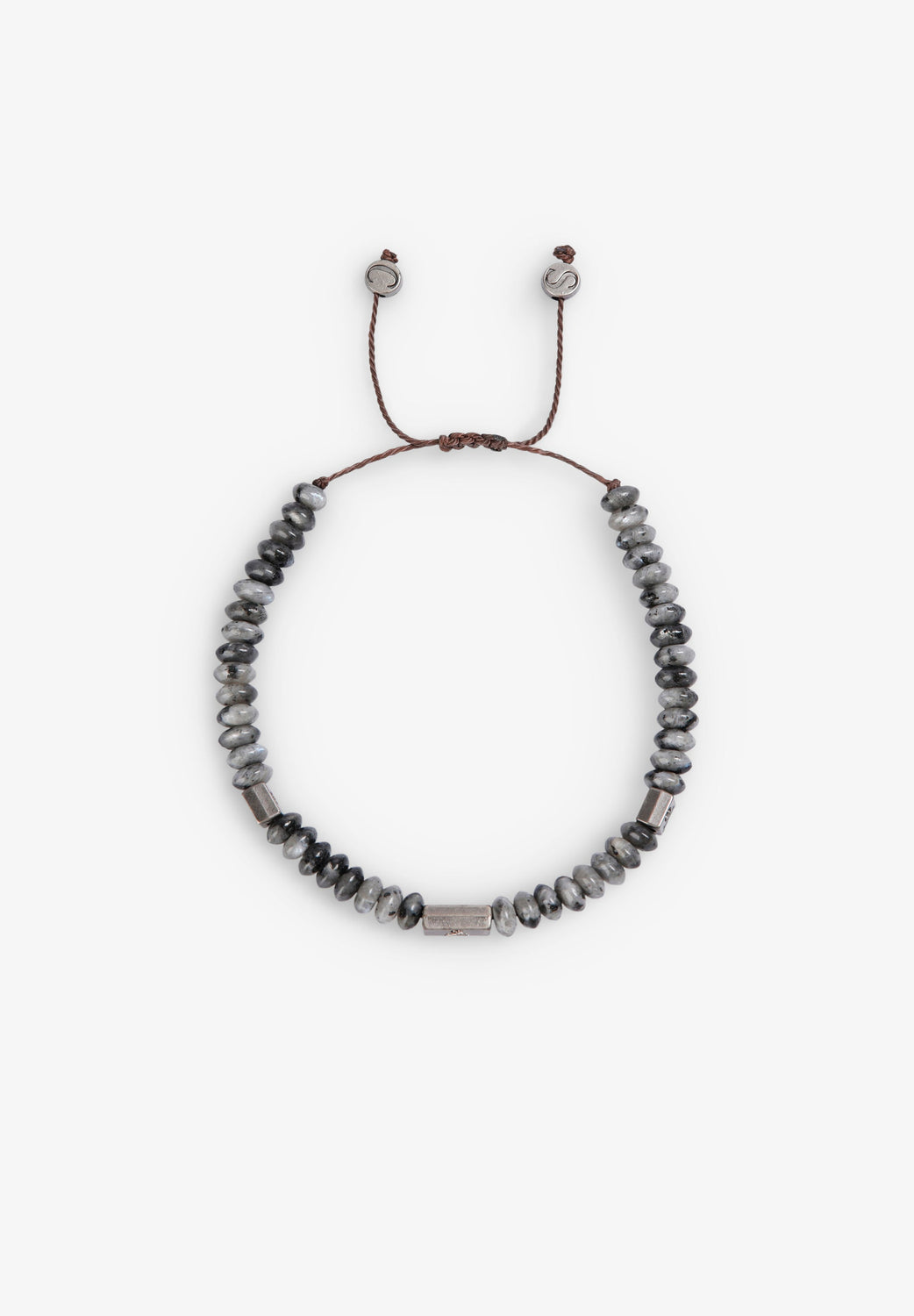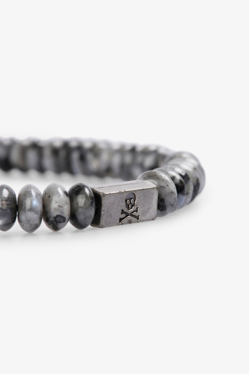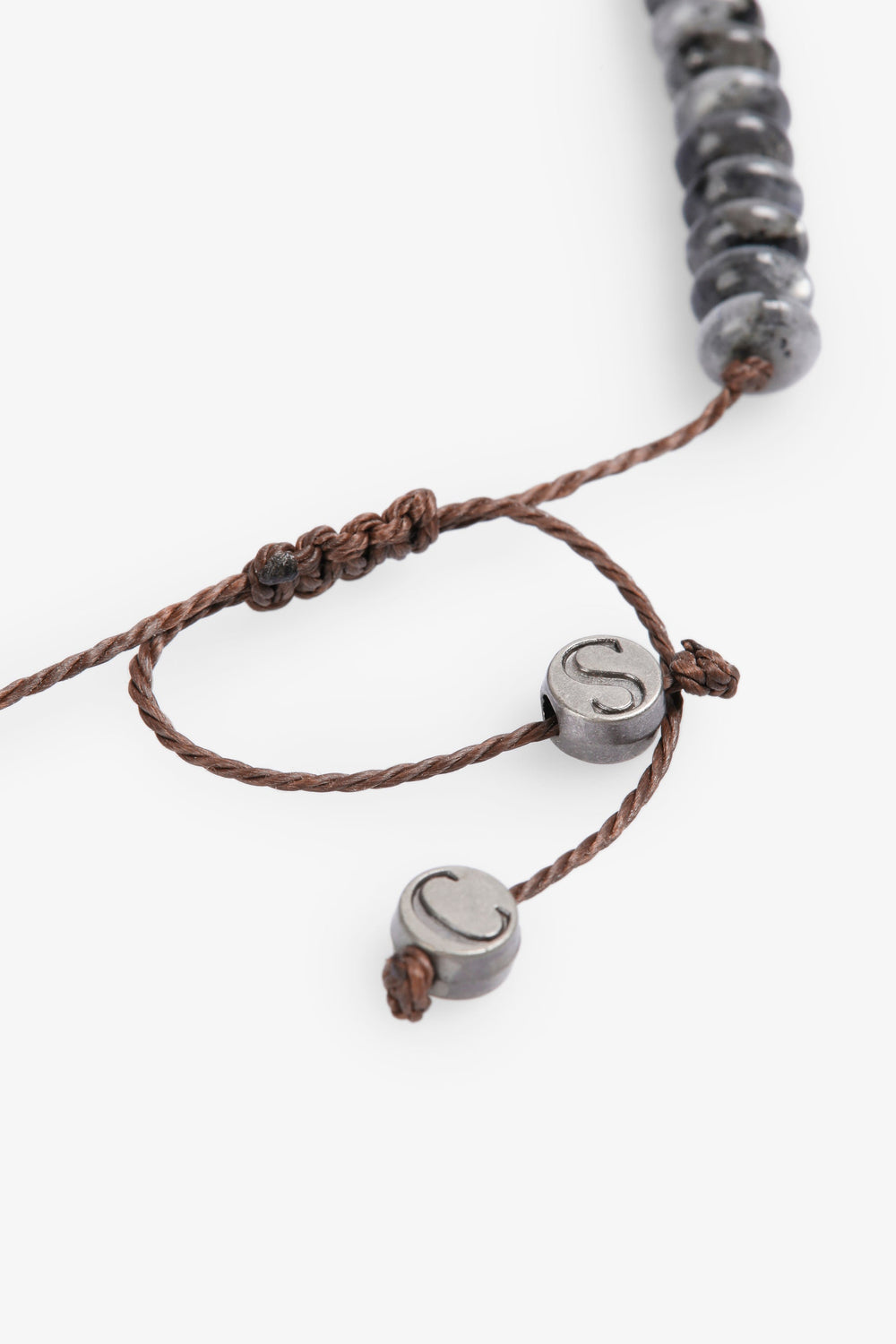 Bracelet made of natural stone. Metal appliqués with logo. Adjustable wrist fastening.