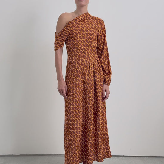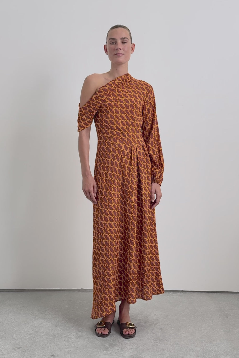 PRINTED ASYMMETRIC NECKLINE DRESS