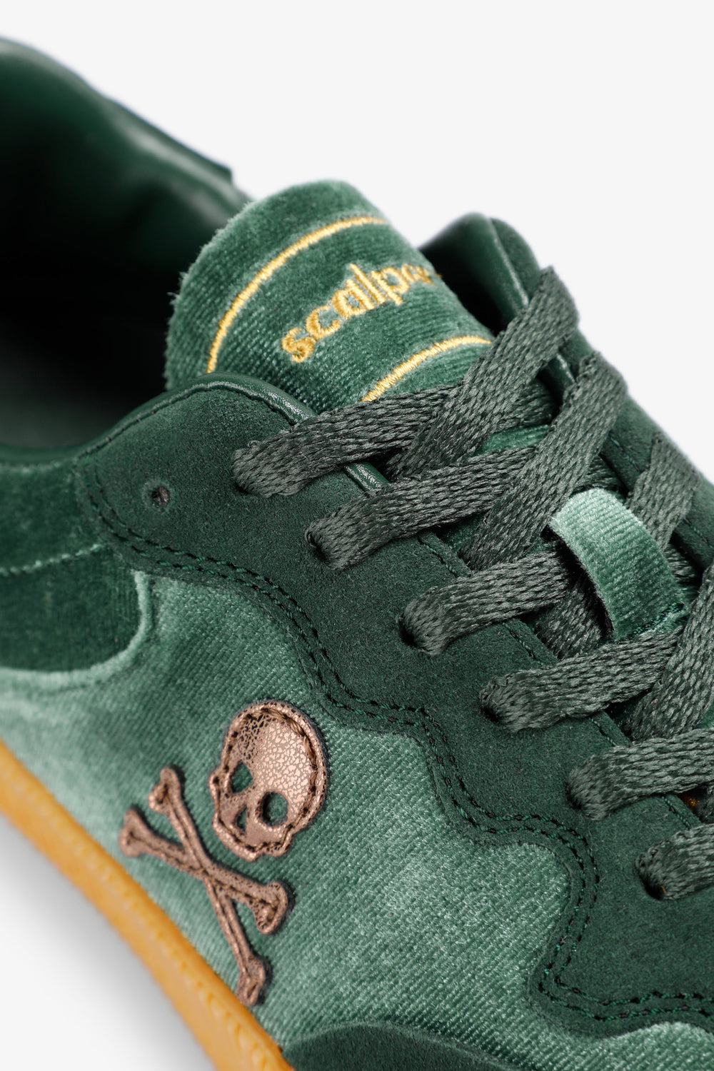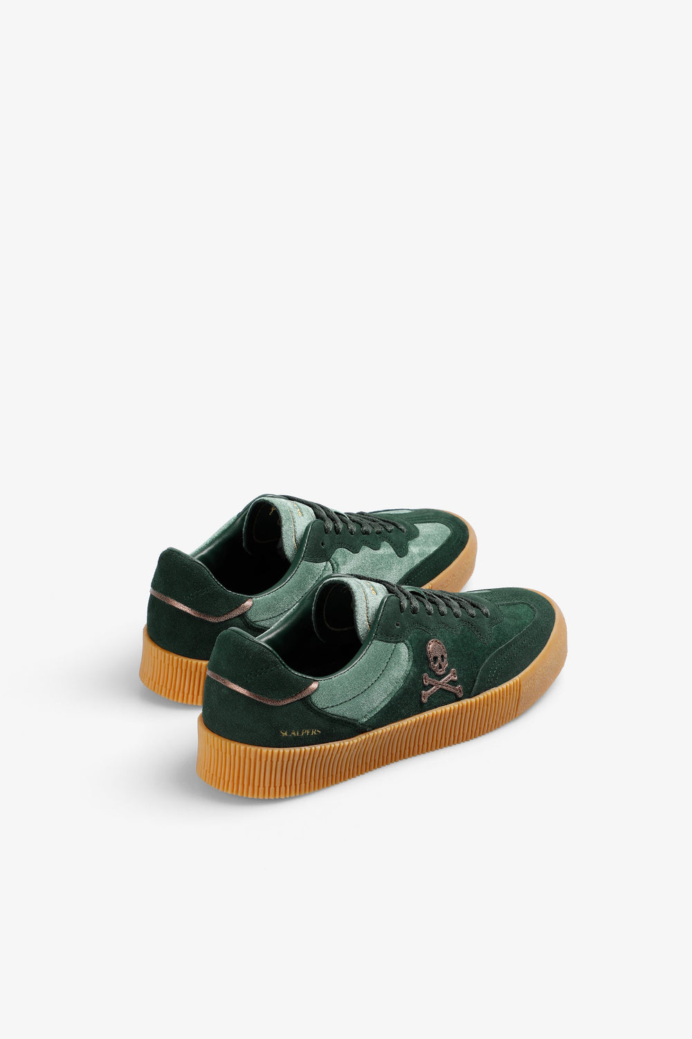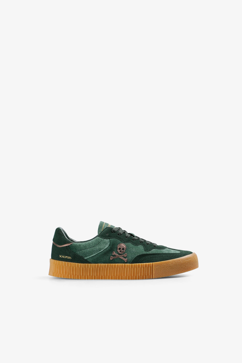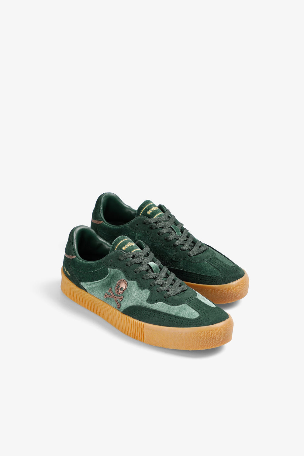 Suede sneakers. Contrast embroidered side logo detail and skull. Contrast TPR sole. Contrast lace-up fastening