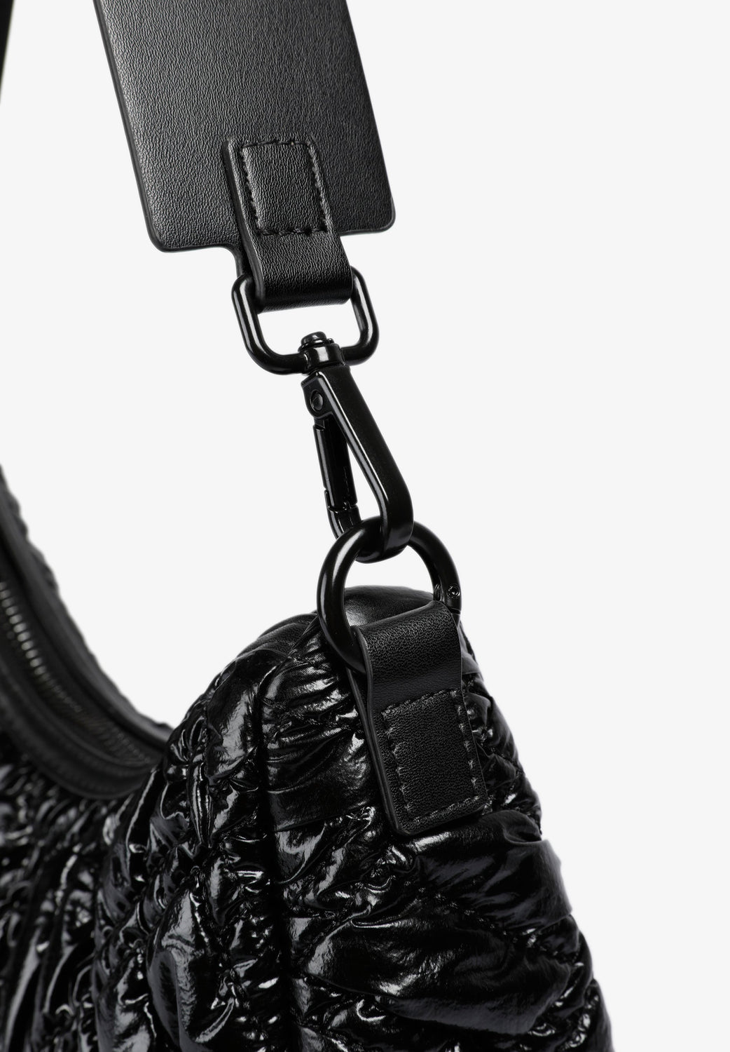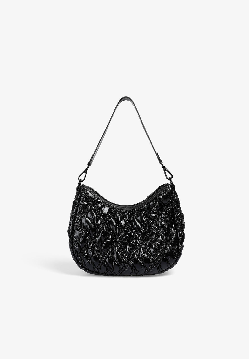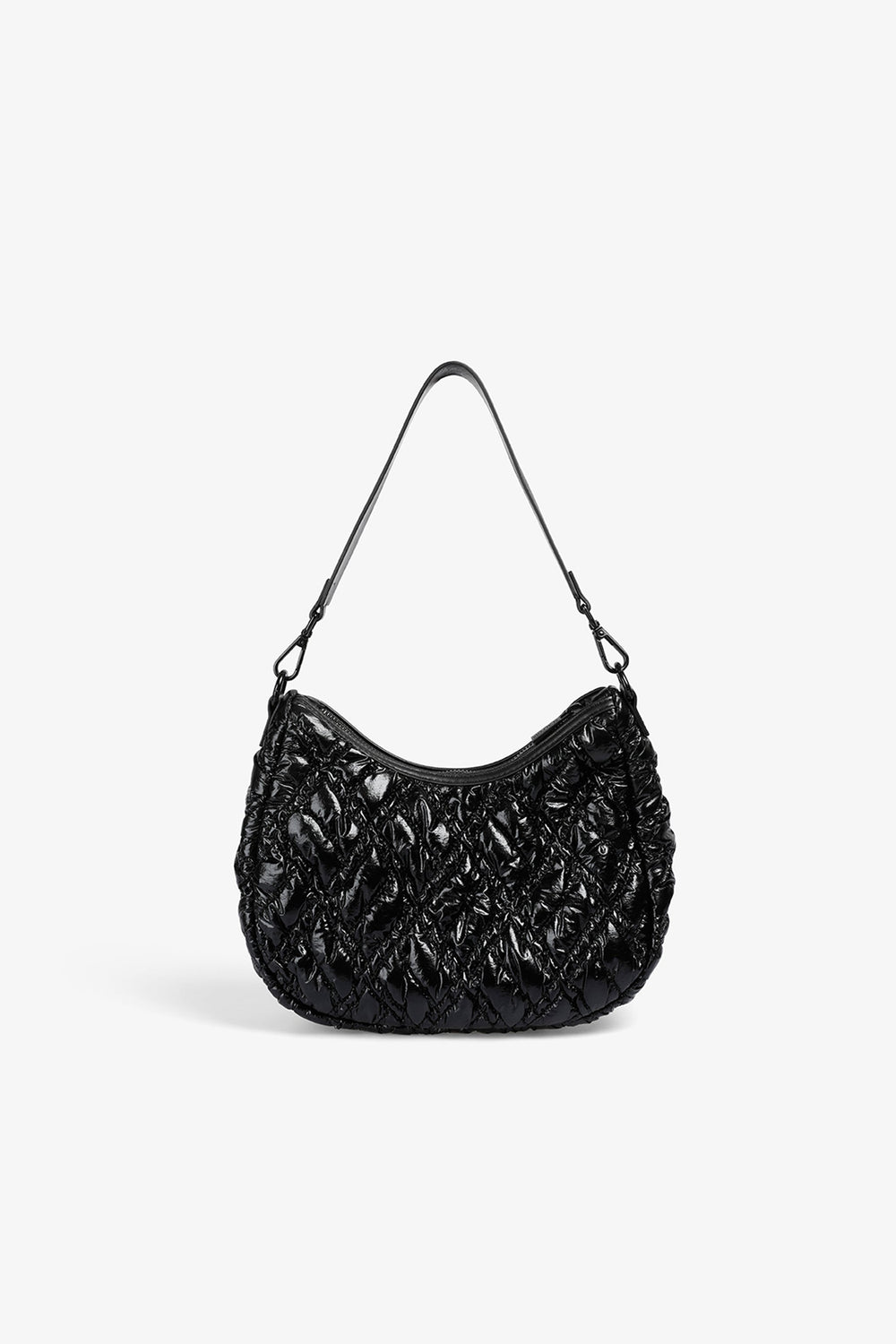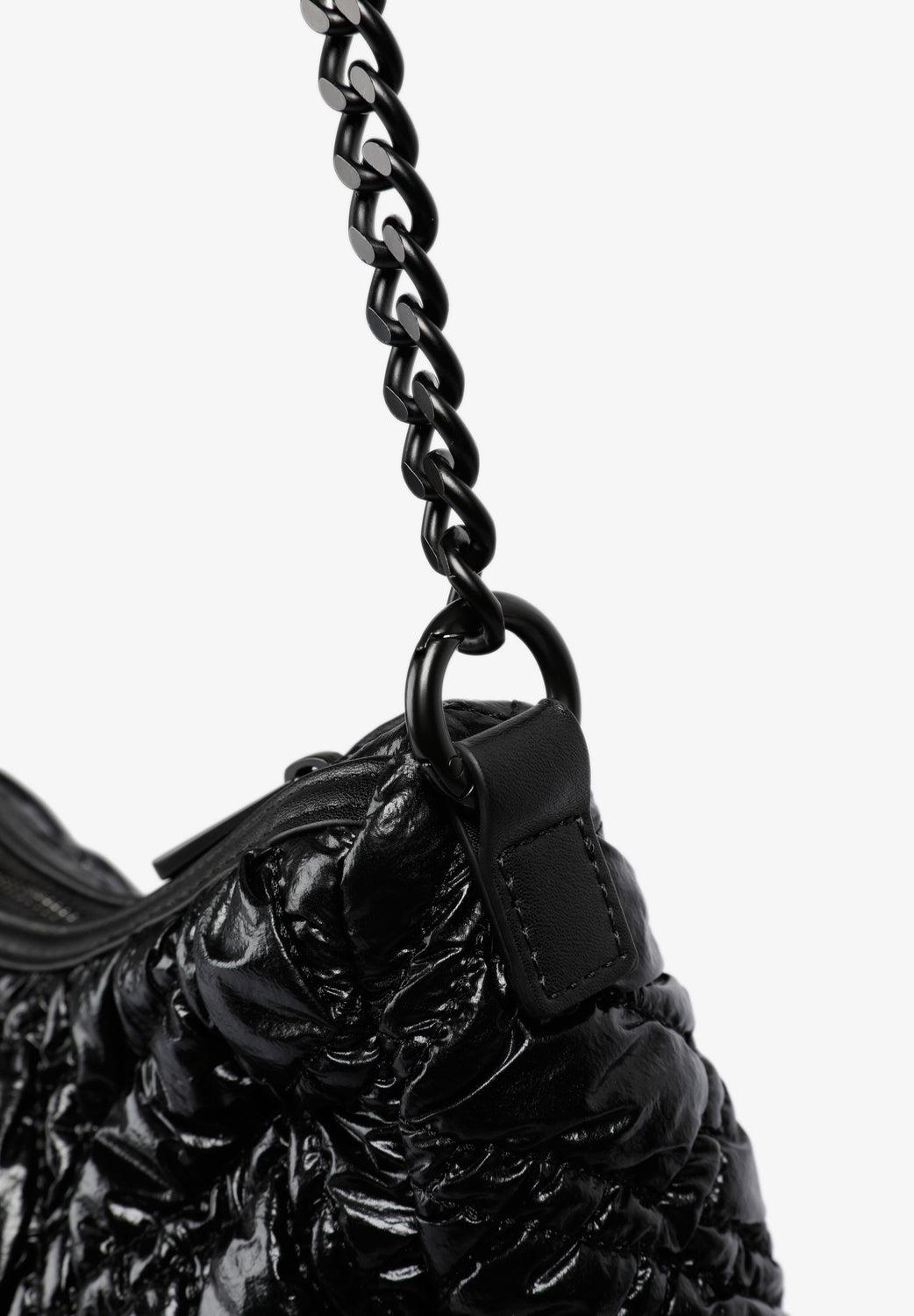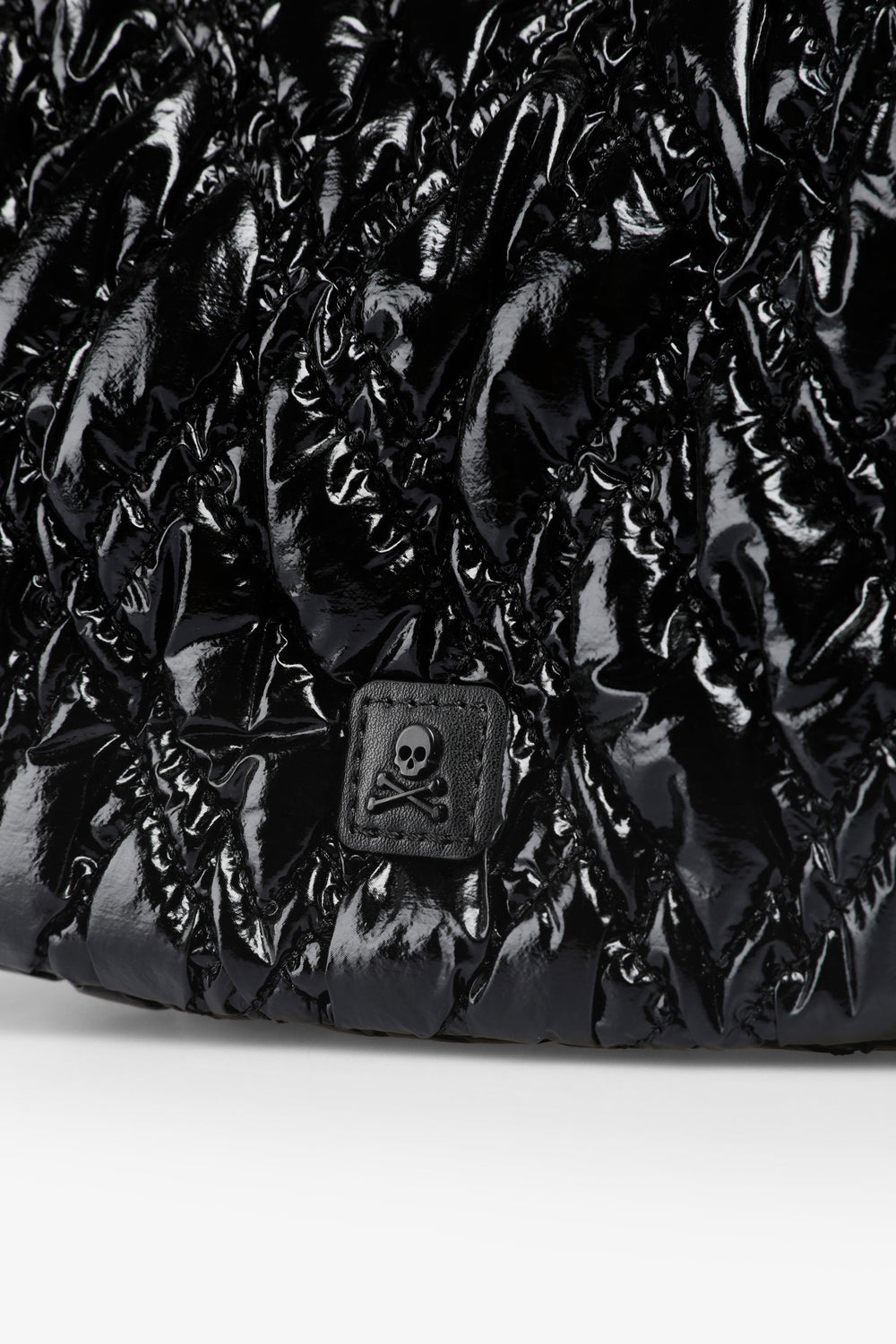 Quilted PU shoulder bag.  Inner lining with zip and zip fastening. Double handle, short and chain option. Logo patch detail on the front.