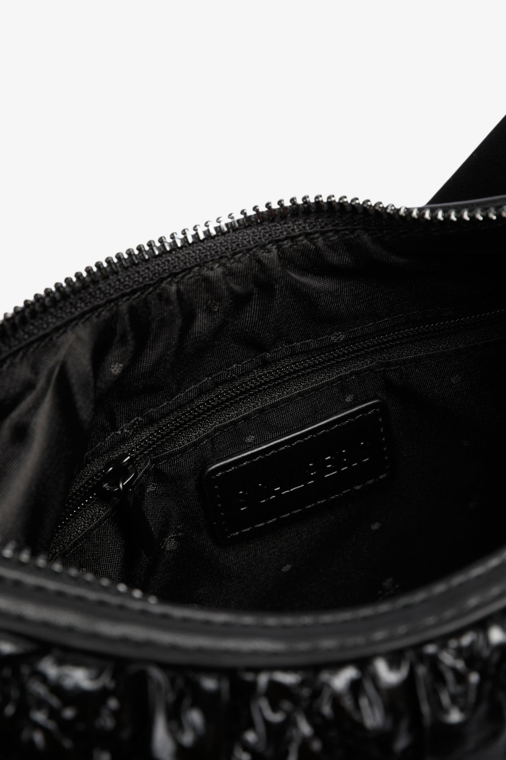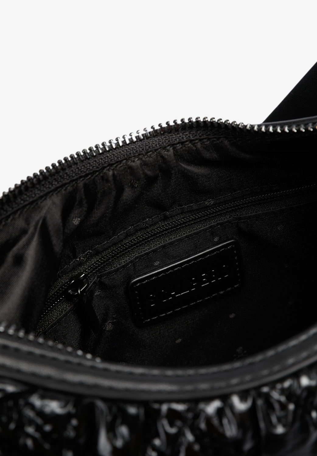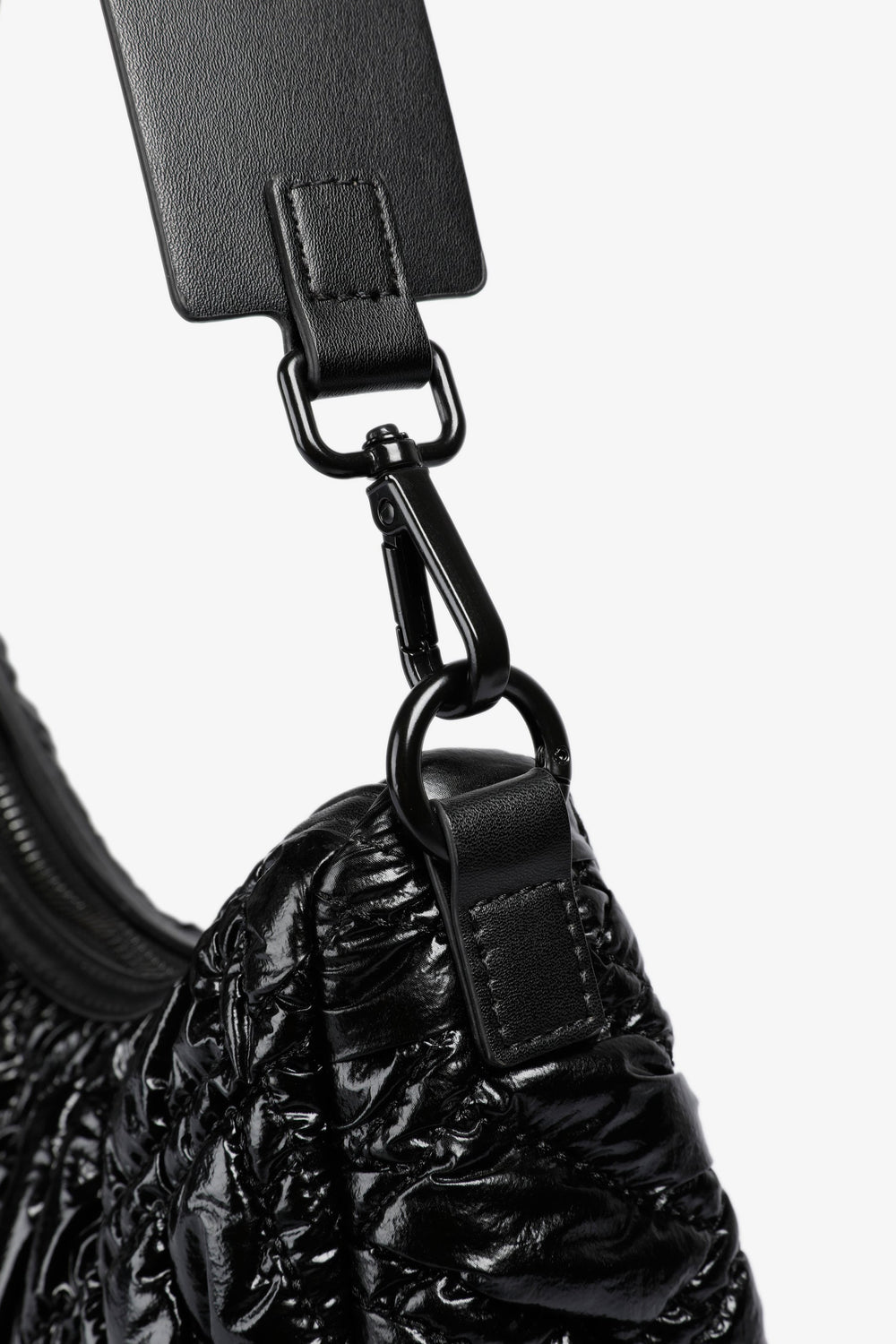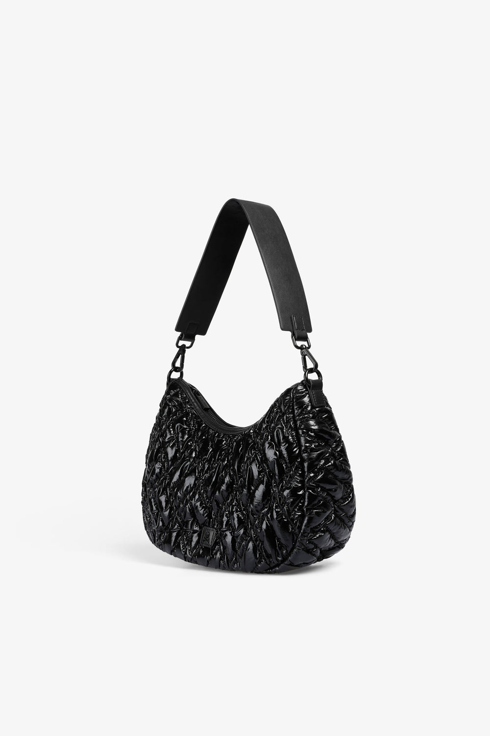 Quilted PU shoulder bag.  Inner lining with zip and zip fastening. Double handle, short and chain option. Logo patch detail on the front.