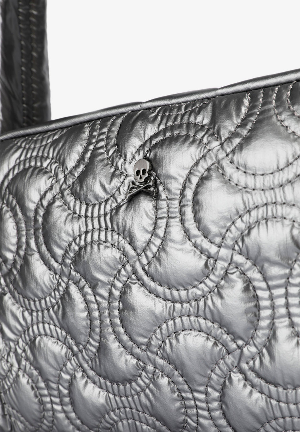 PU crossbody bag. Padded and metallic. Inner lining and zipped pocket. Zip fastening. Adjustable strap. Rubberised logo detail on the front.