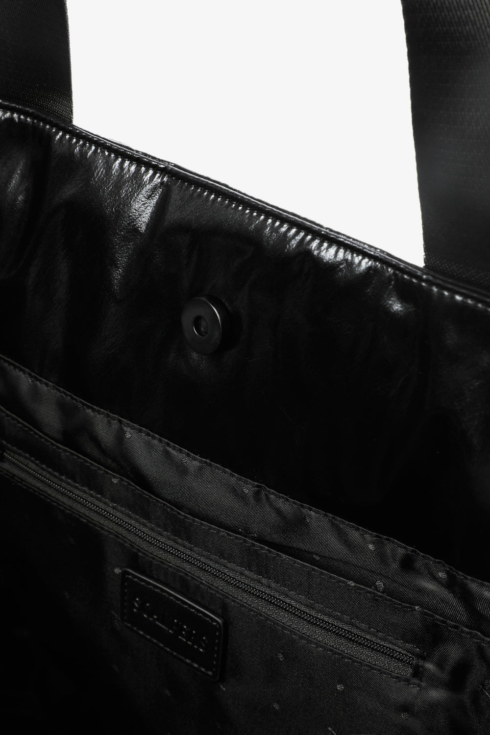 Sports bag made of PU. Water resistant. Long strap and short handle. Logo detail on handles and matching metallic skull on front. Magnetic button closure. Inner pocket with zip closure and matching embroidered logo patch detail.