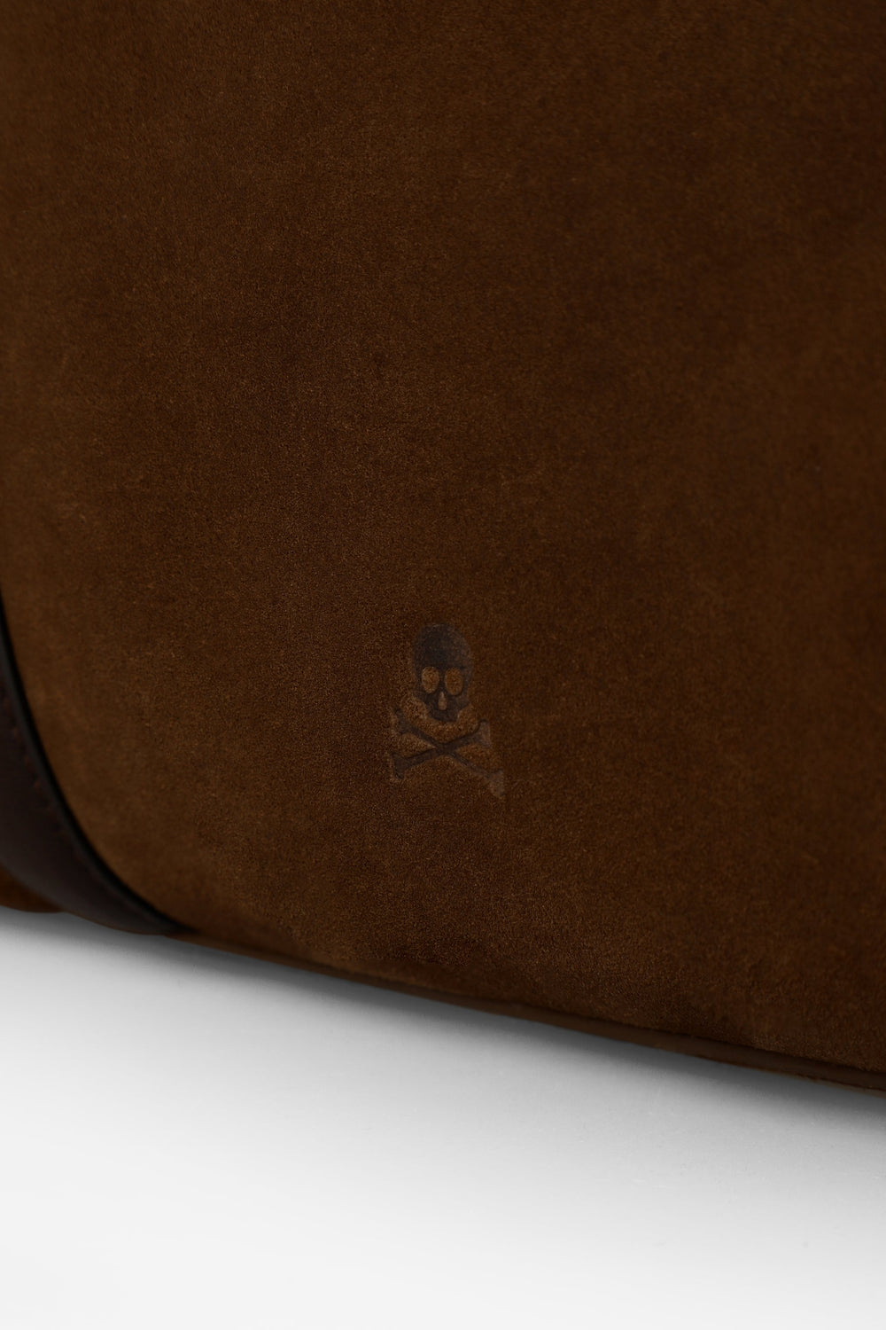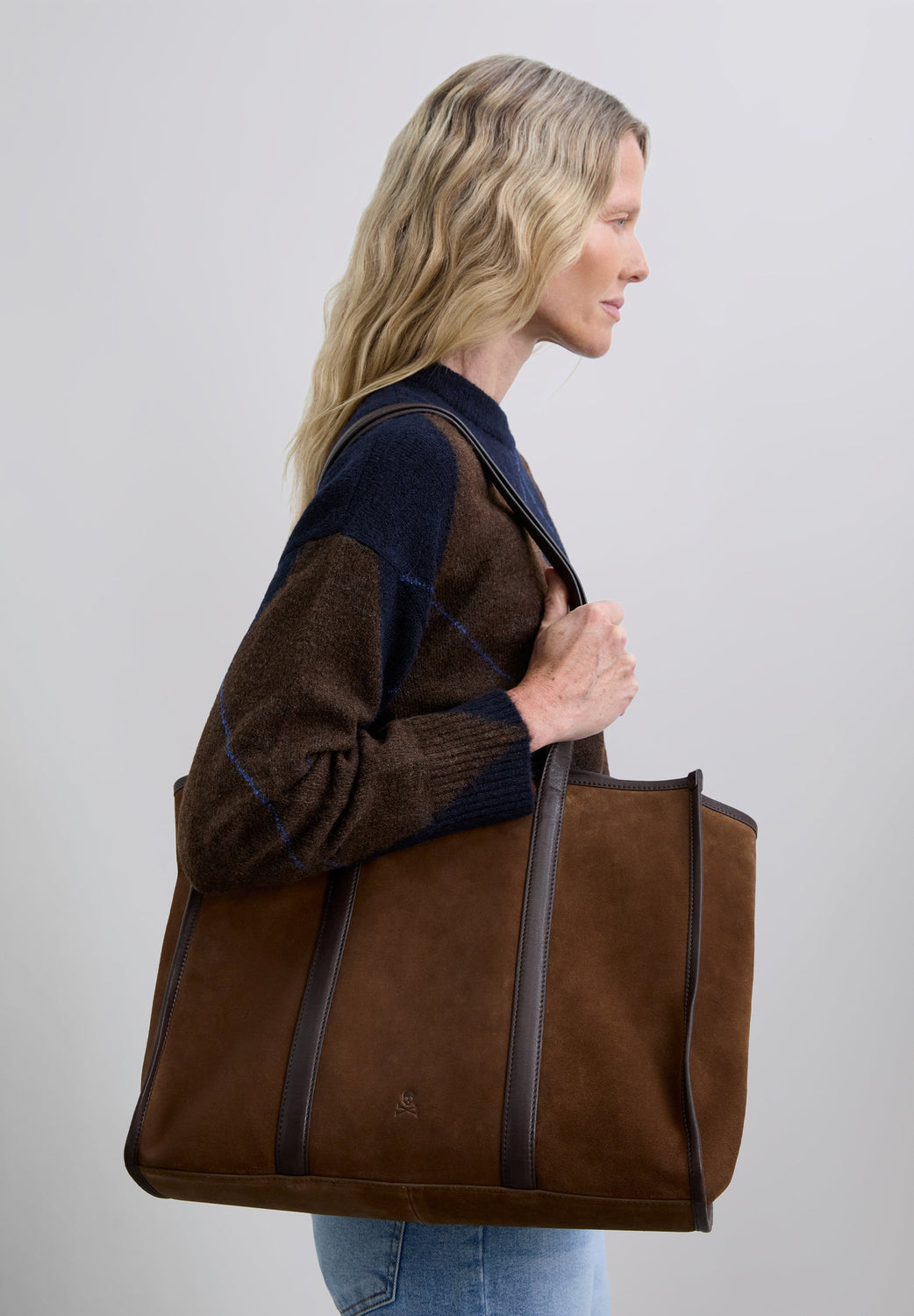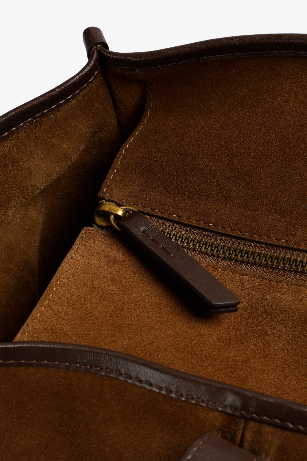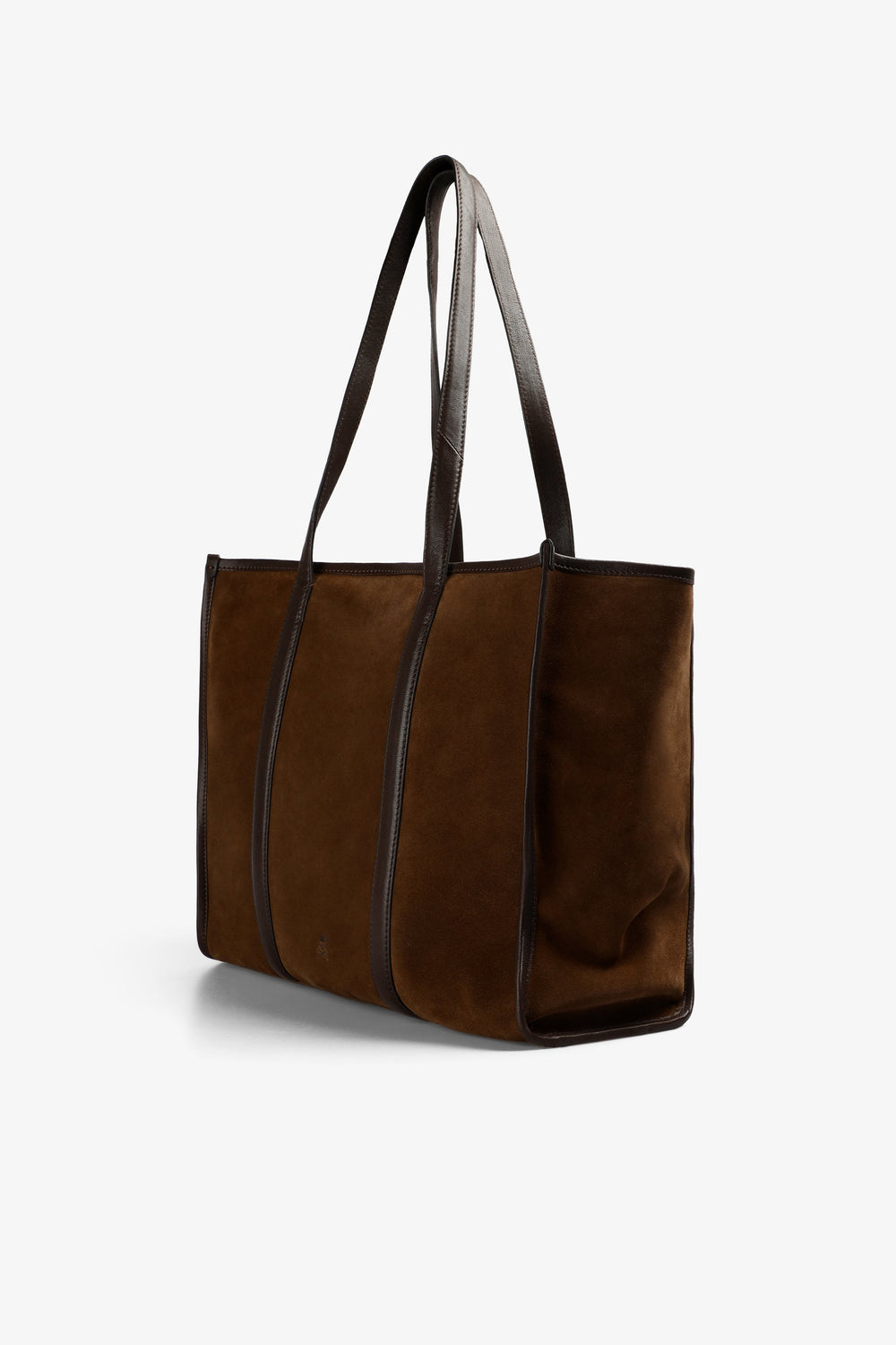 Tote bag made from 100% suede. Contrast leather details. Zip fastening.