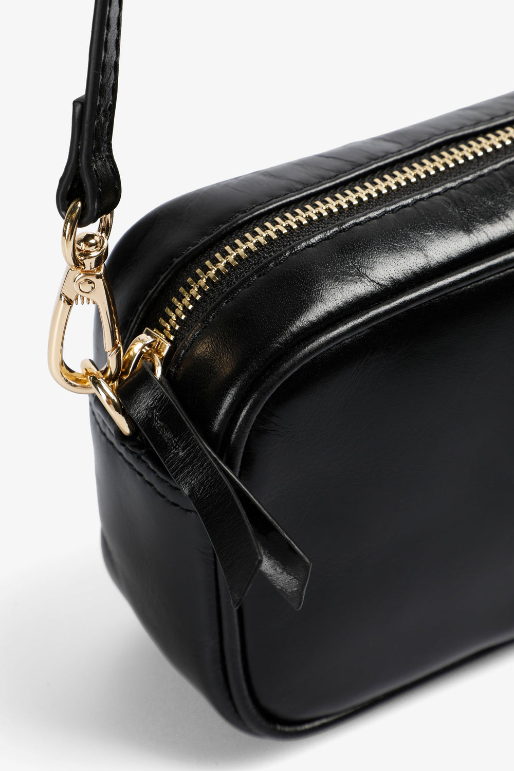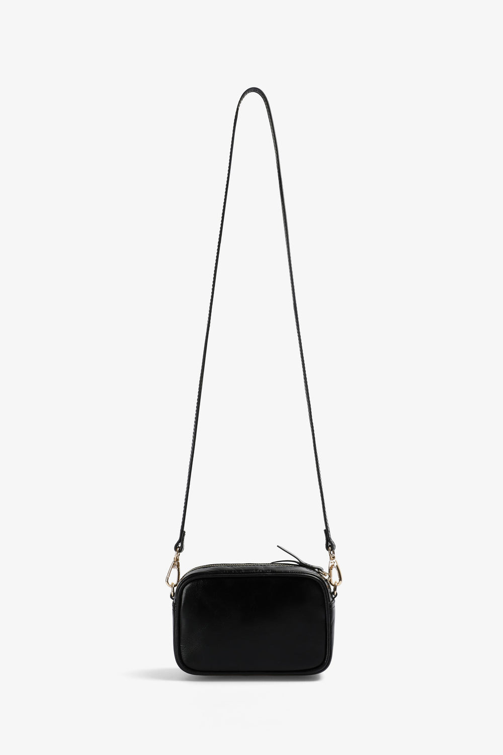 Small size bag. Made of 100% leather. Zip fastening. Long strap. Logo detail on the front.