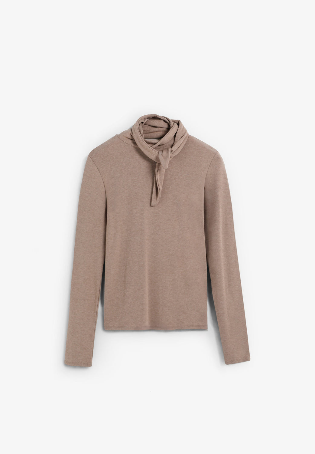 T-shirt with turn-down collar and scarf-style neck tie detail.  Long sleeves. Slim fit.