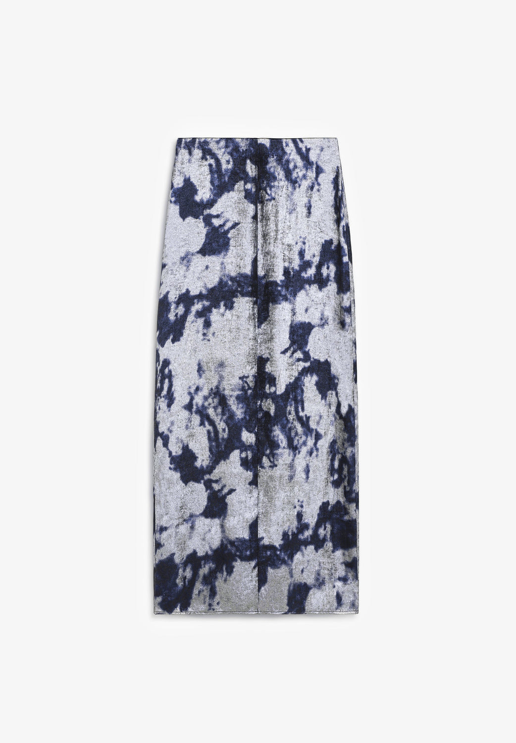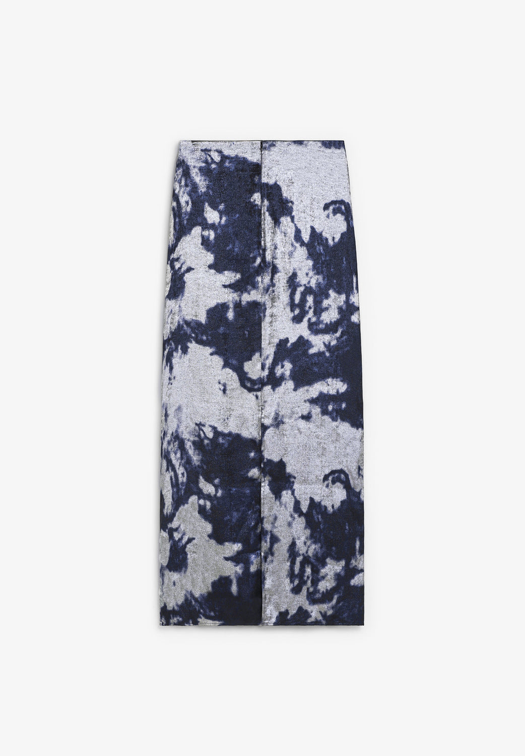 Flowing fabric skirt with tie-dye print and metallic details. Slim fit. Midi. Back vent. Concealed side zip fastening.
