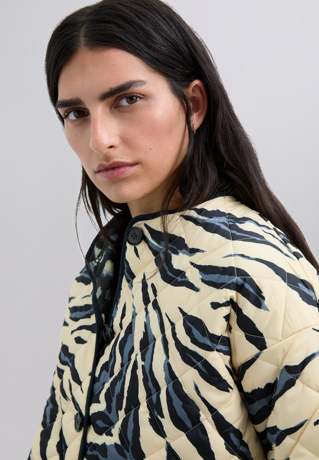 Reversible puffer jacket. Relaxed fit Animal print. Long sleeves. Two front pockets. Button fastening.