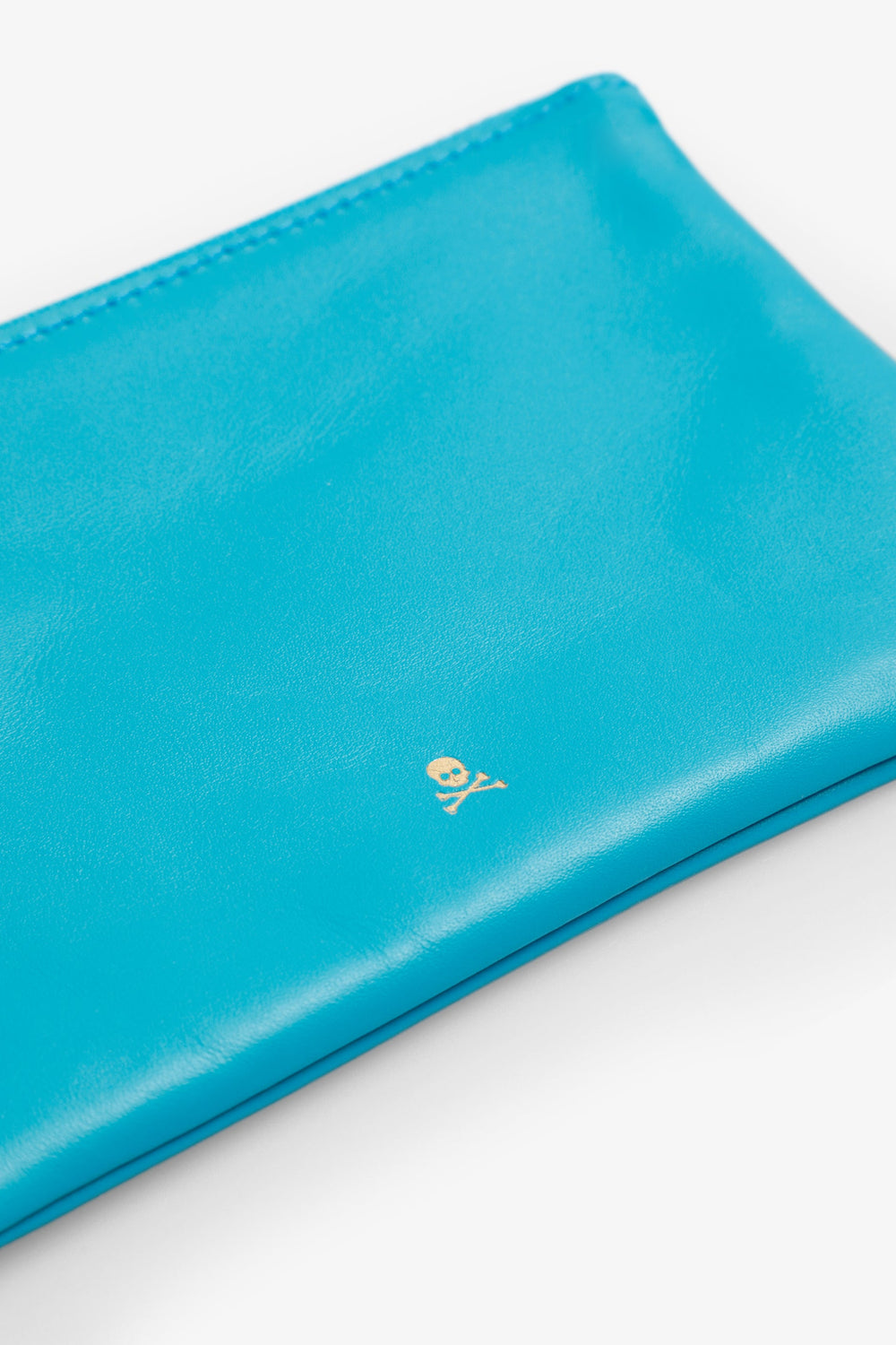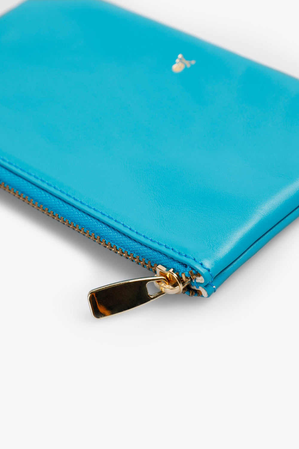 Coin purse crafted in fluorescent leather. Zip fastening and contrasting metallic embossed logo.