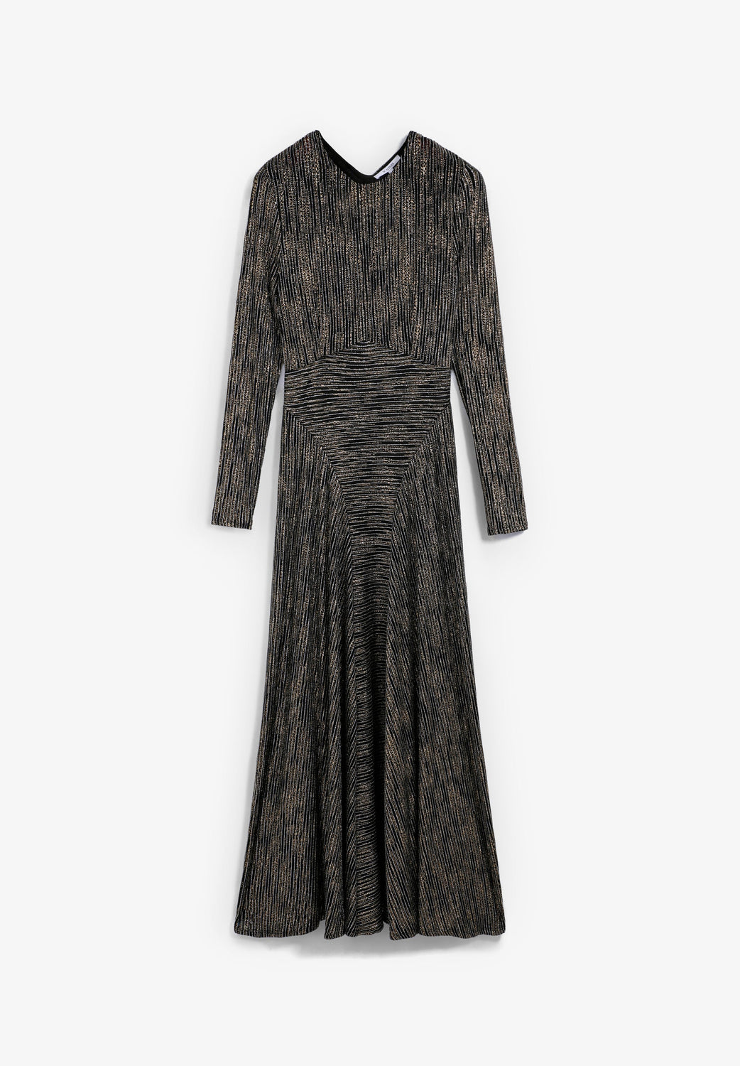 Dress made of slightly stretchy fluid fabric with metallic striped print. Slim fit. Round neck. Long sleeves. Front panel detail.