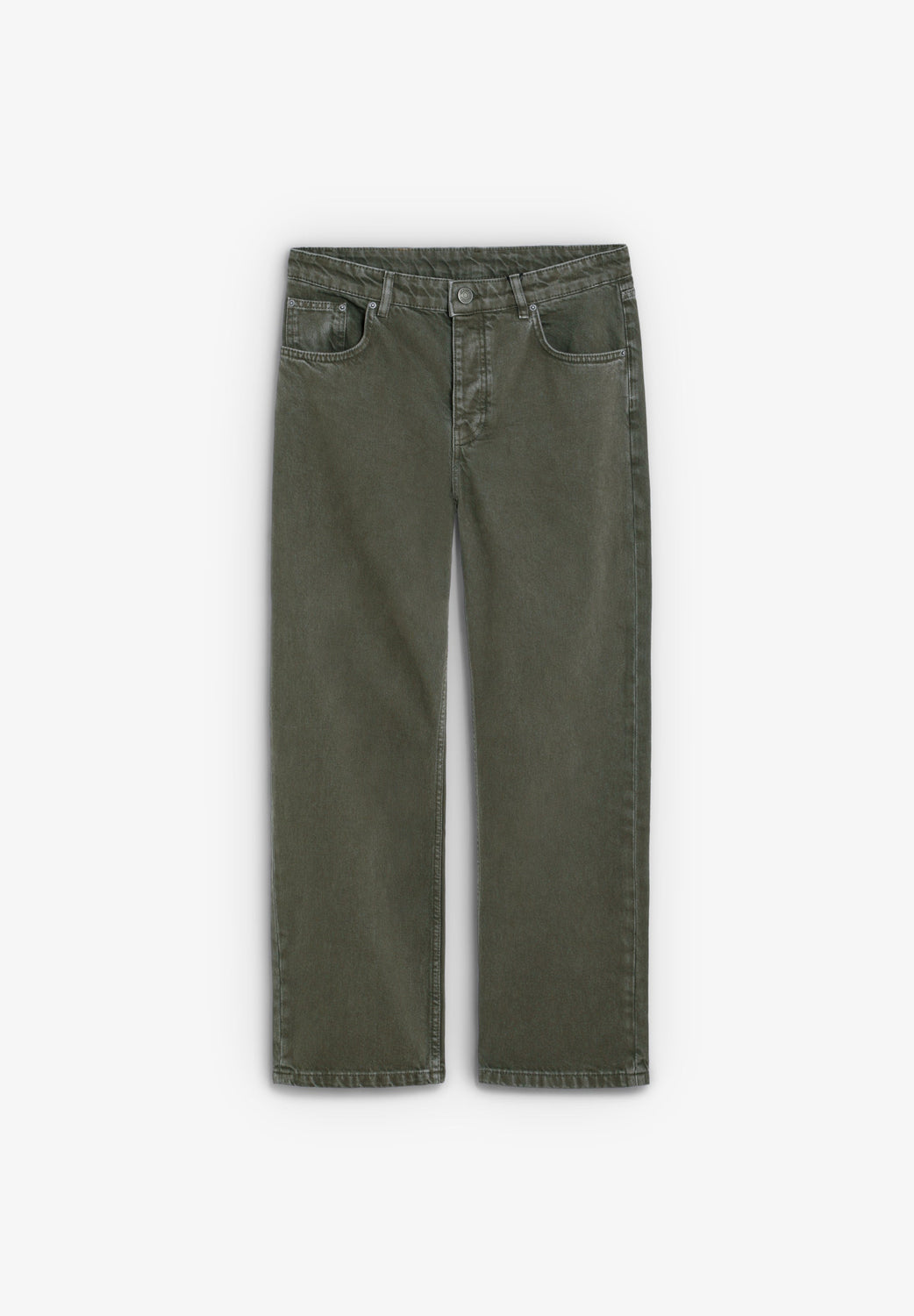 Cropped fit jeans. Five pockets. Faded effect. Belt loops at the waist. Front zip and button fastening.