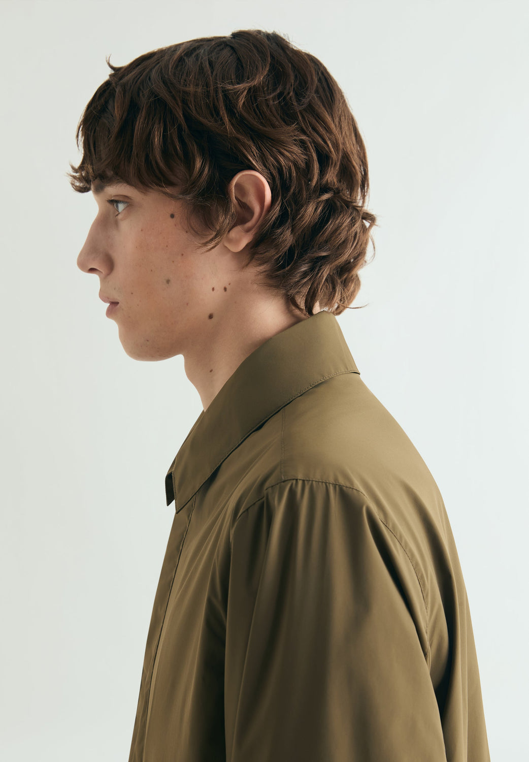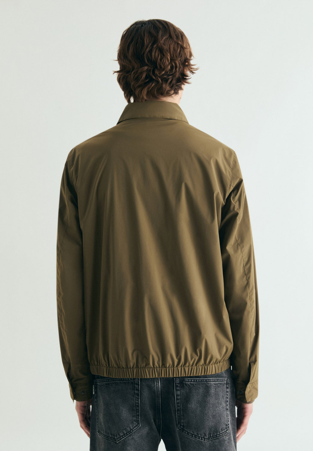 Jacket made of a technical fabric. Concealed zip and press-stud fastening. Two side pockets. Inner pocket. Adjustable cuffs. Slightly stretchy hem.