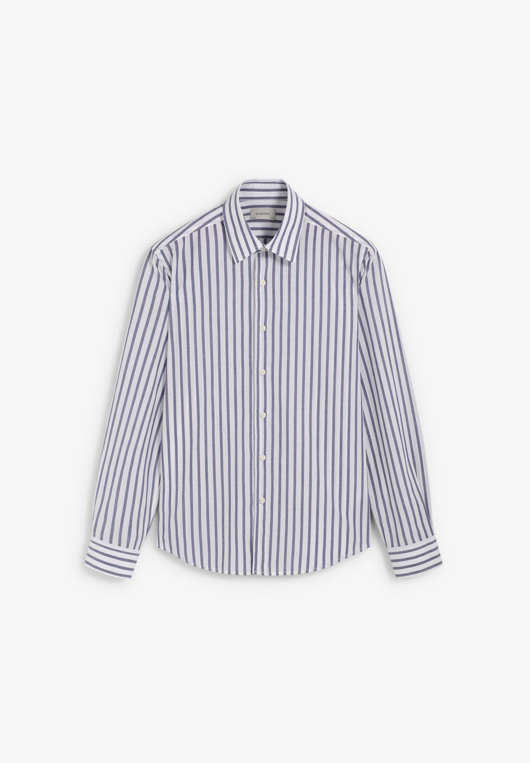Shirt made of 100% cotton. Stripe print. Front button fastening. Embroidered logo detail on the placket.
