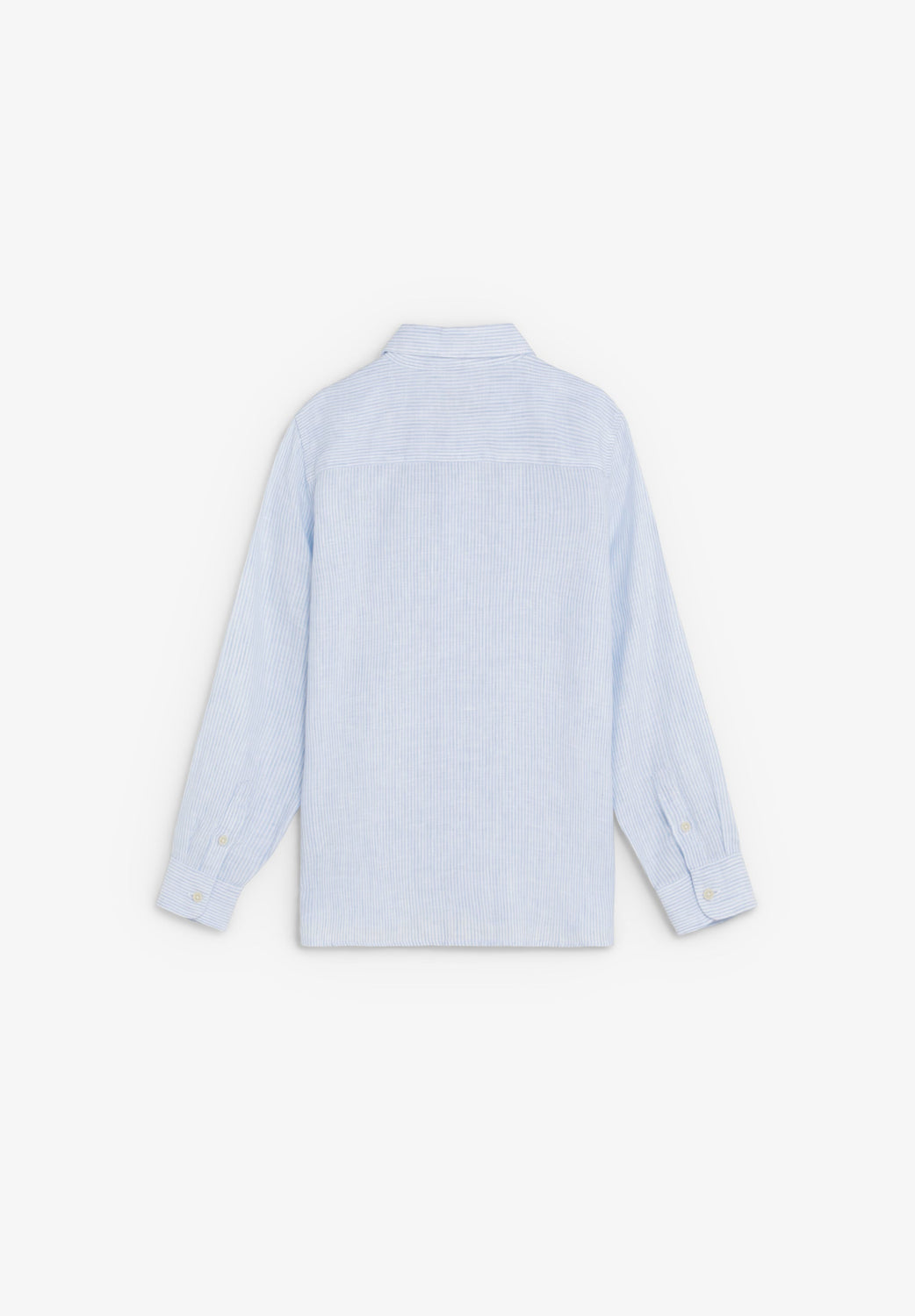 Shirt made of 100% linen. Regular Fit. Classic collar and long sleeves with buttoned cuffs. Stripe print. Front button fastening. Embroidered skull detail on the chest.