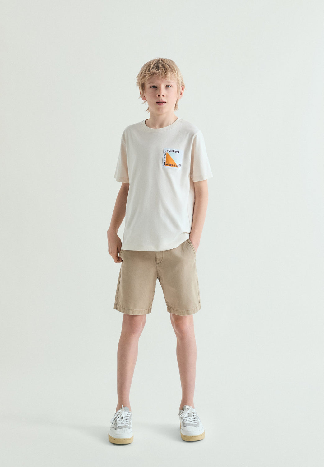 Bermuda shorts made of 100% organic cotton. Regular Fit. Belt loops and slanted pockets. Zip and button fastening. Matching embroidered skull on the pocket.