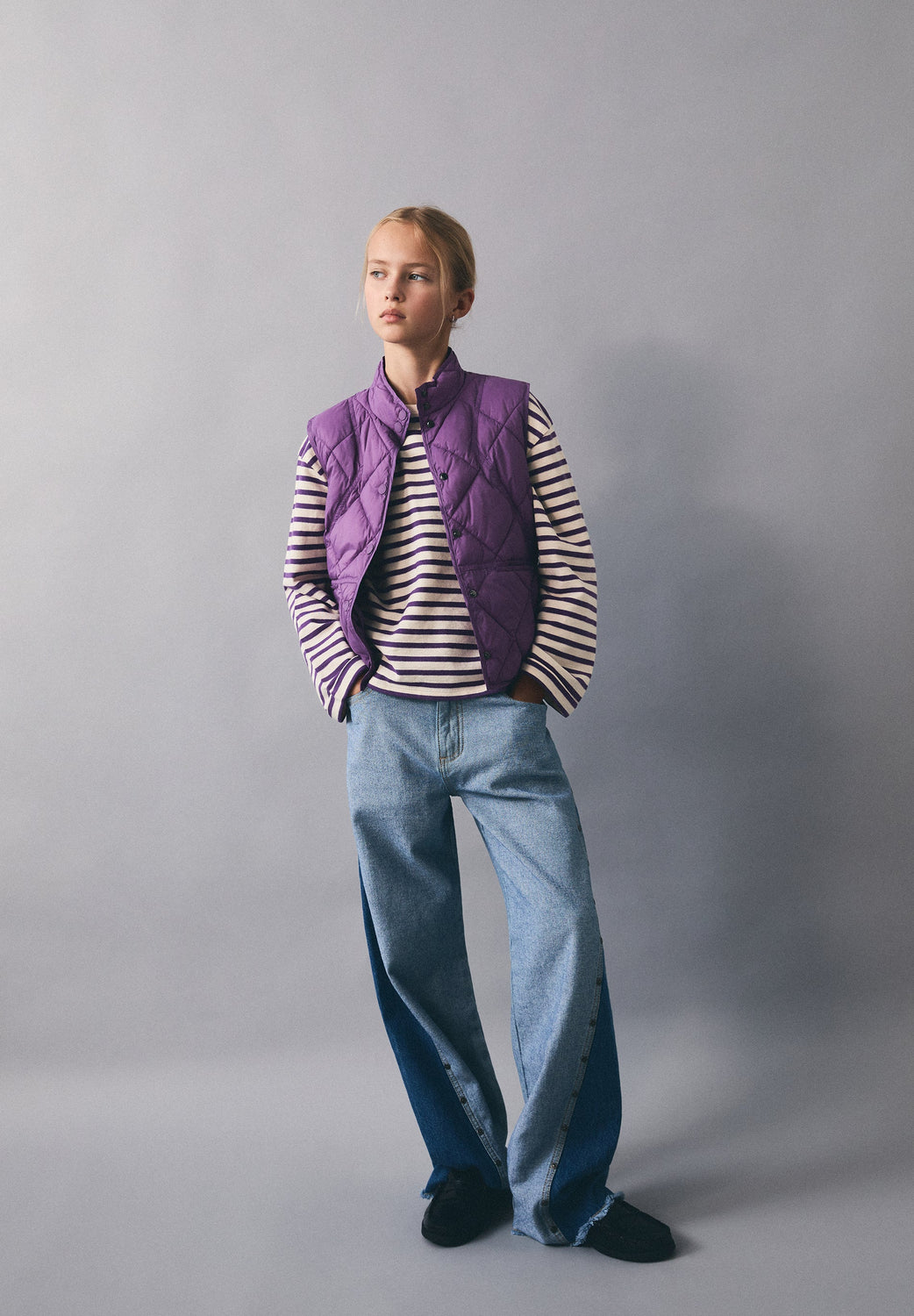 T-shirt made of 100% BCI cotton. Round neck. Long sleeves. Striped print with skull on the back.