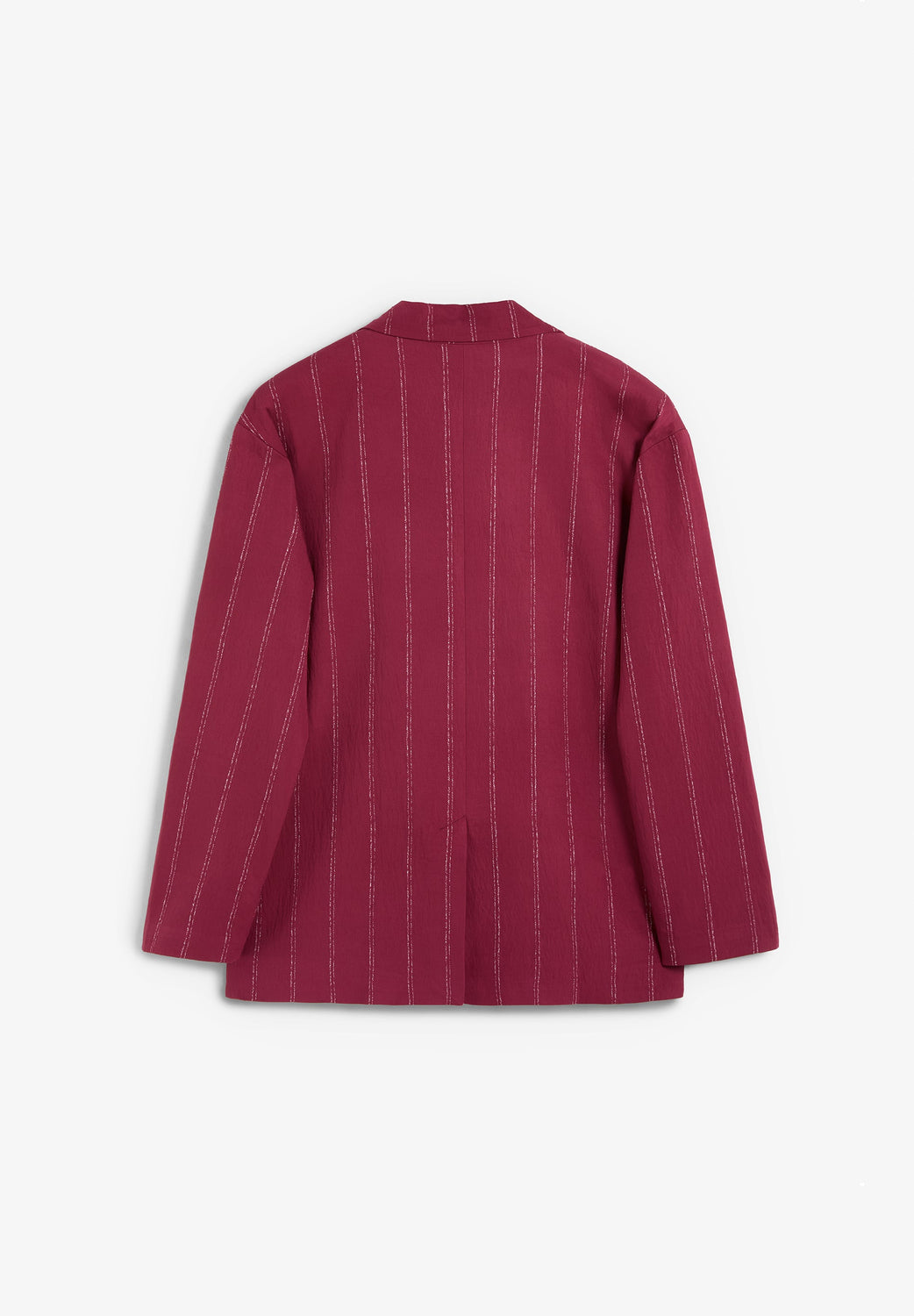 Blazer made of a flowing fabric with a striped print. Relaxed fit. Lapel collar and long sleeves. Side flap pockets. Straight back with lower slit. Double-breasted front button fastening.