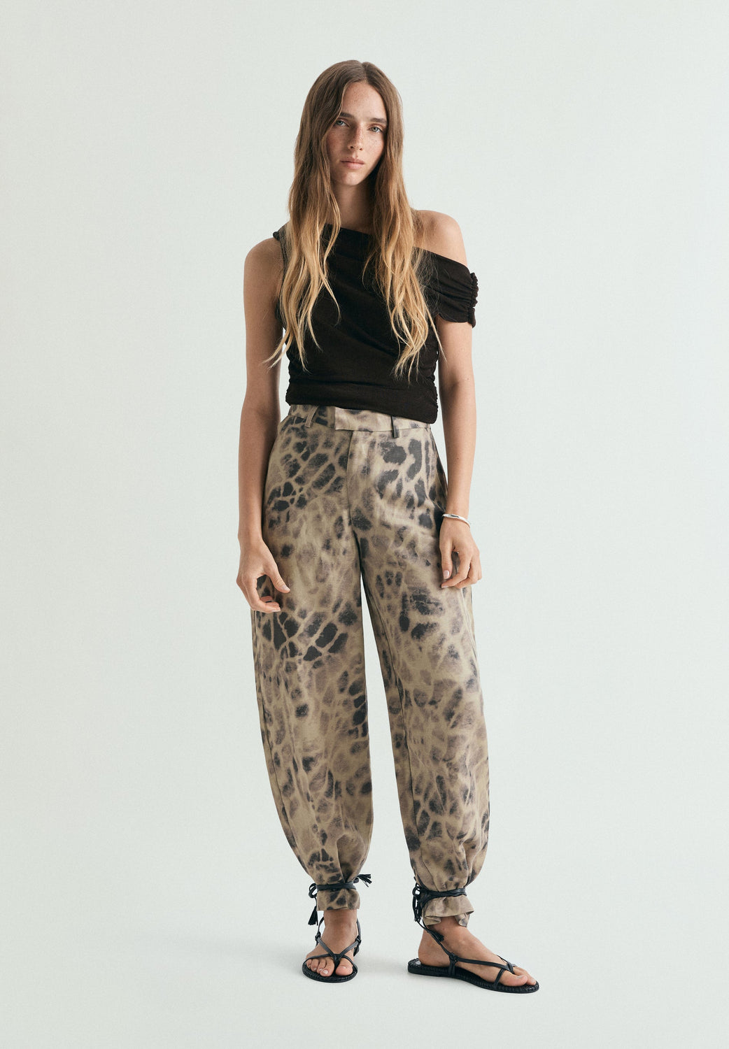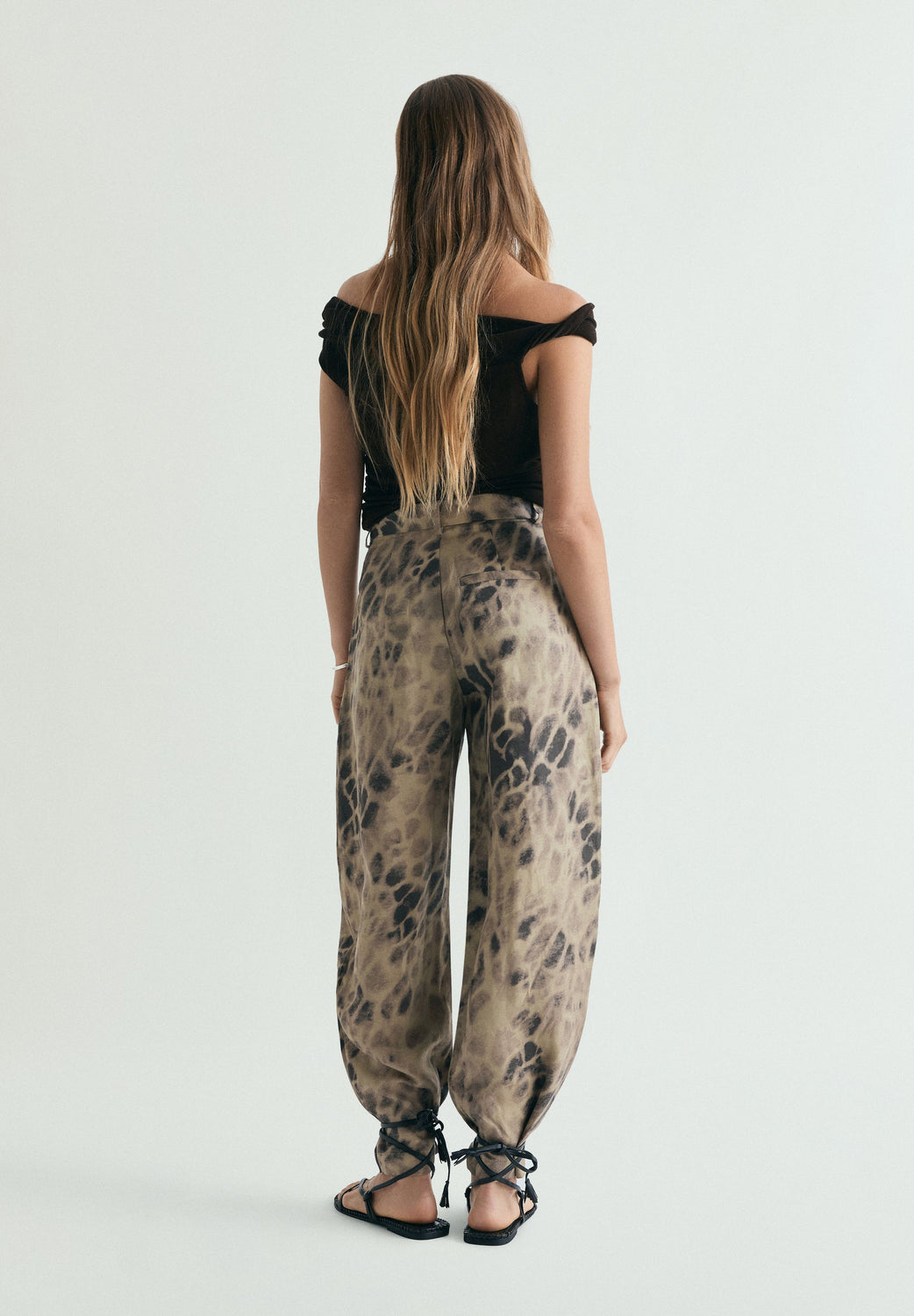 Printed trousers made of a linen blend. Balloon cut, loose fit. Belt loops and zip and hook fastening. Side pockets.